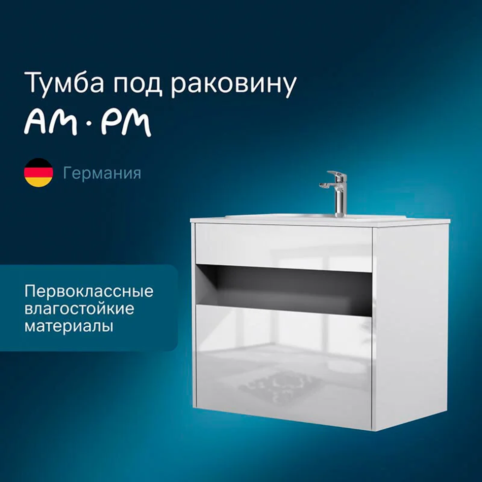 Тумба под раковину Am.Pm Func, 80 см, подвесная/напольная, белая, M8FFUX0801WG