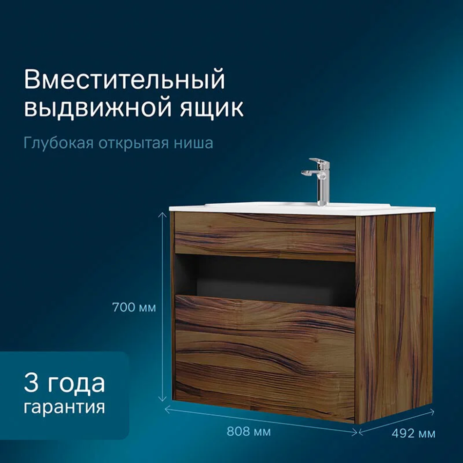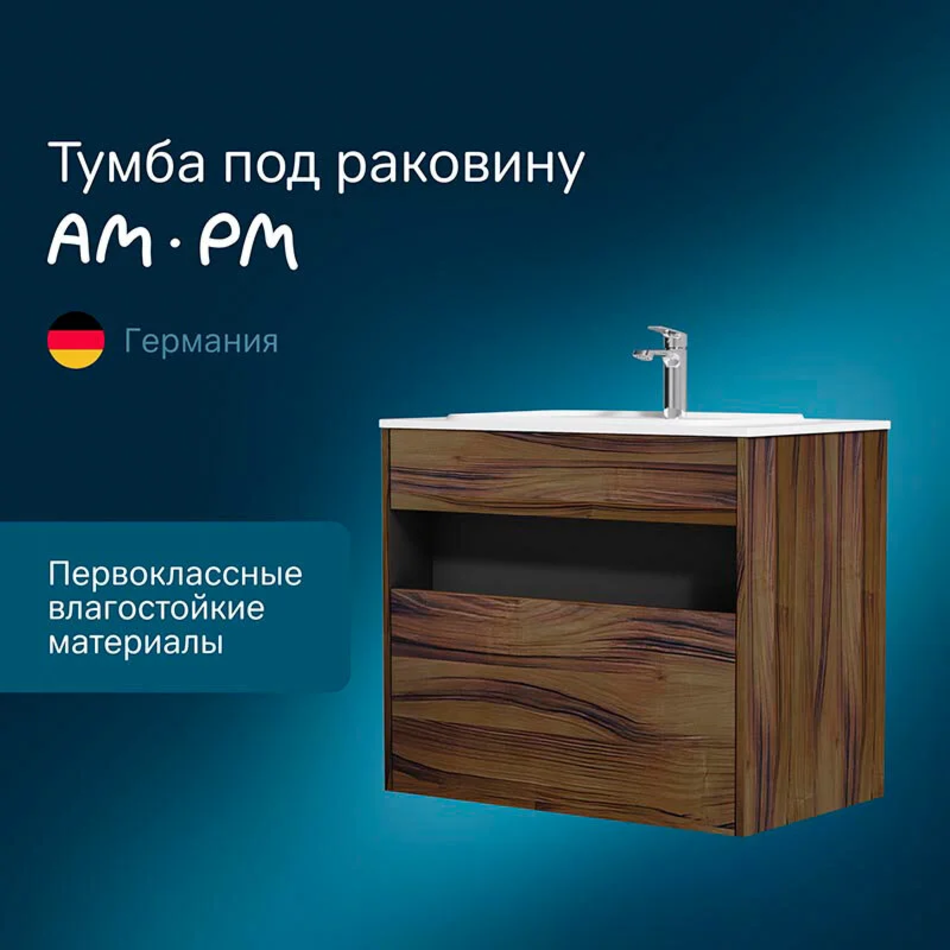 Тумба под раковину Am.Pm Func, 80 см, подвесная/напольная, темное дерево, M8FFUX0801OF