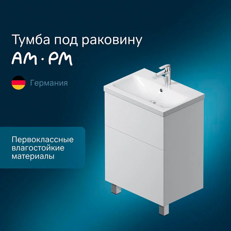 Тумба под раковину Am.Pm Gem 60 см M90FSX06022WG32 напольная, цвет белый глянец