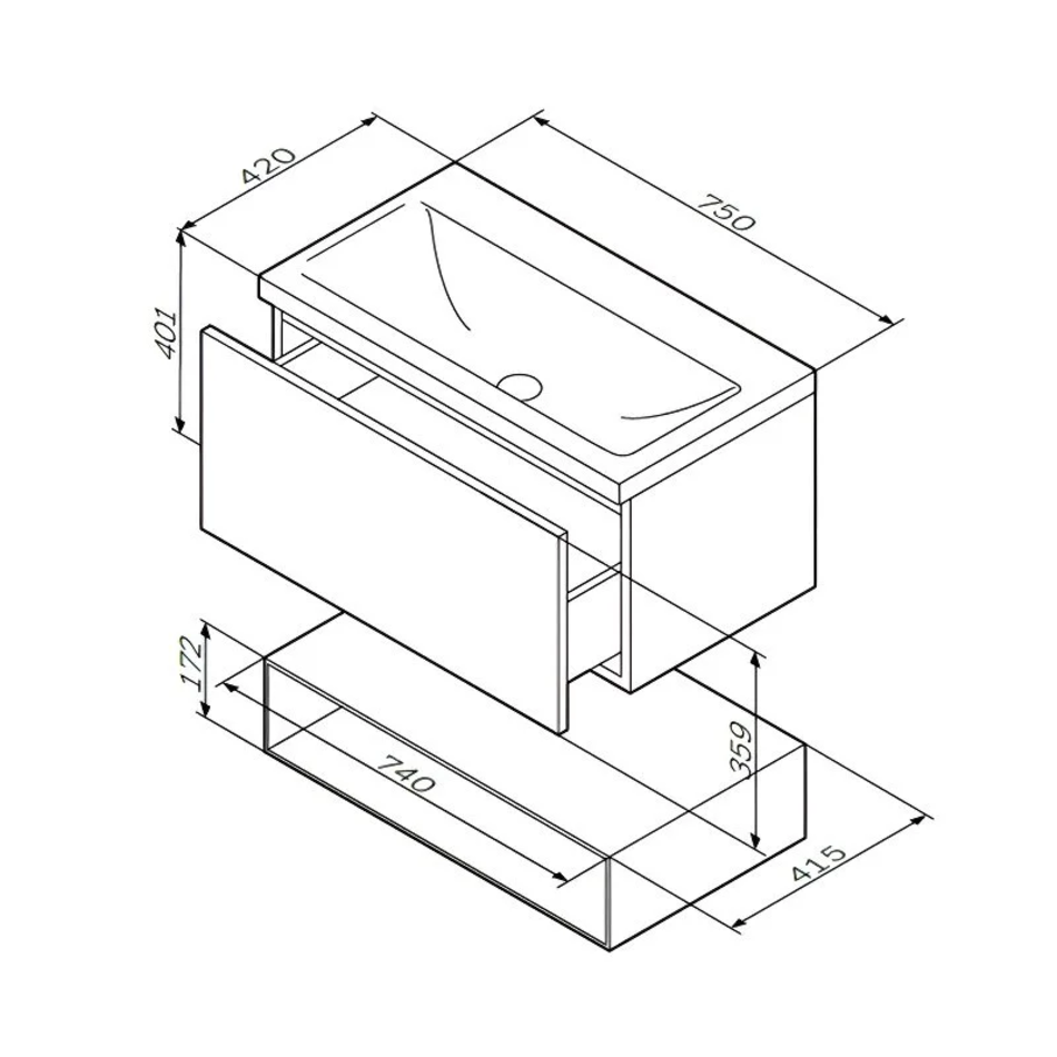 Тумба под раковину Am.Pm Gem 75 см M90FHX07521WG подвесная белая