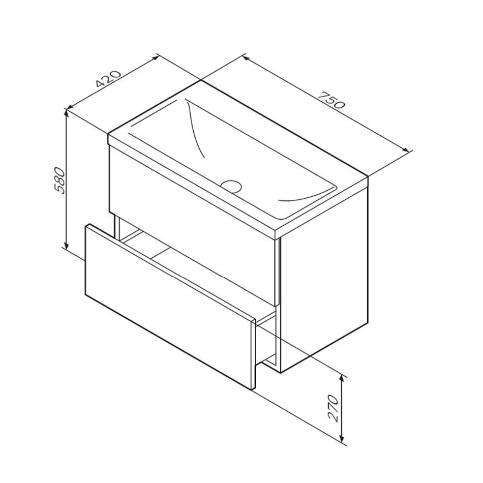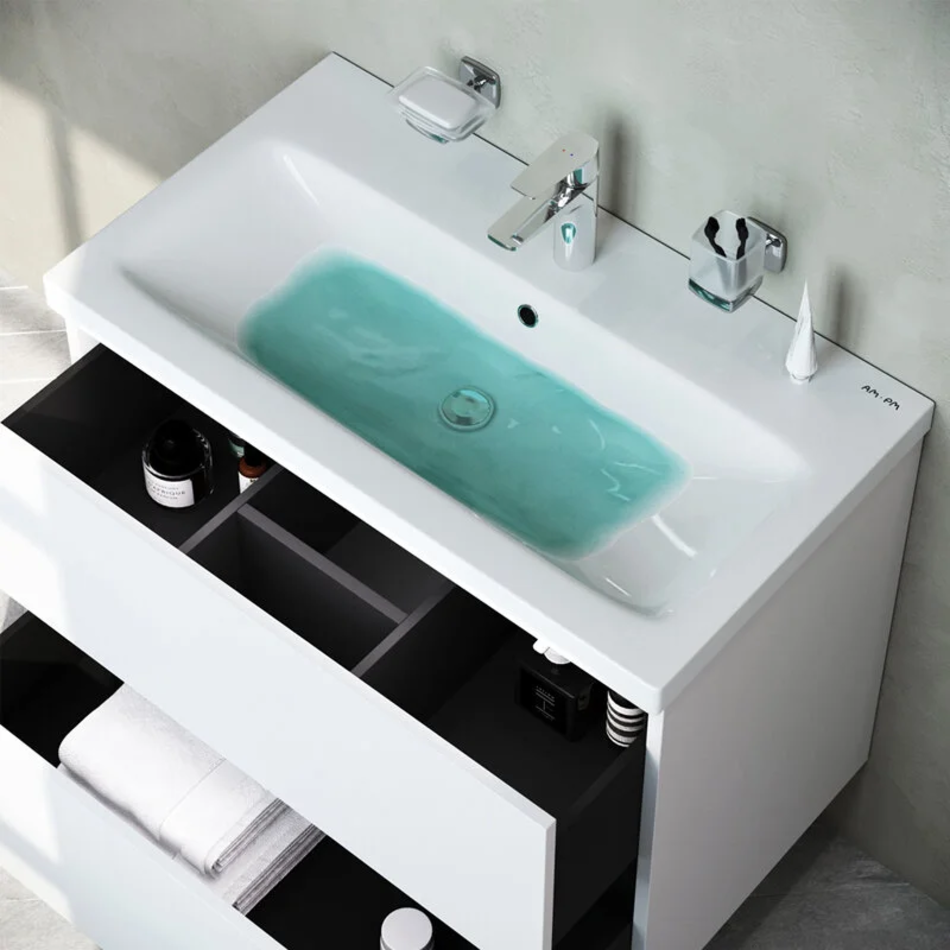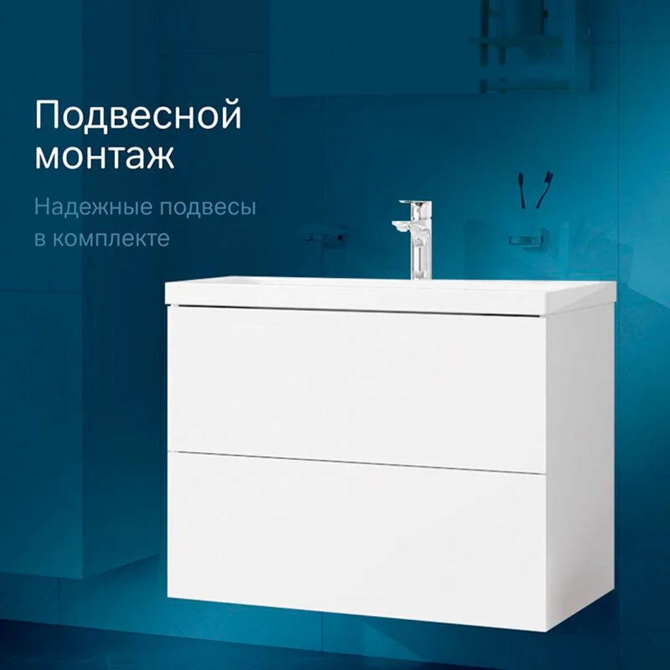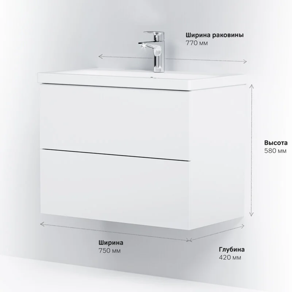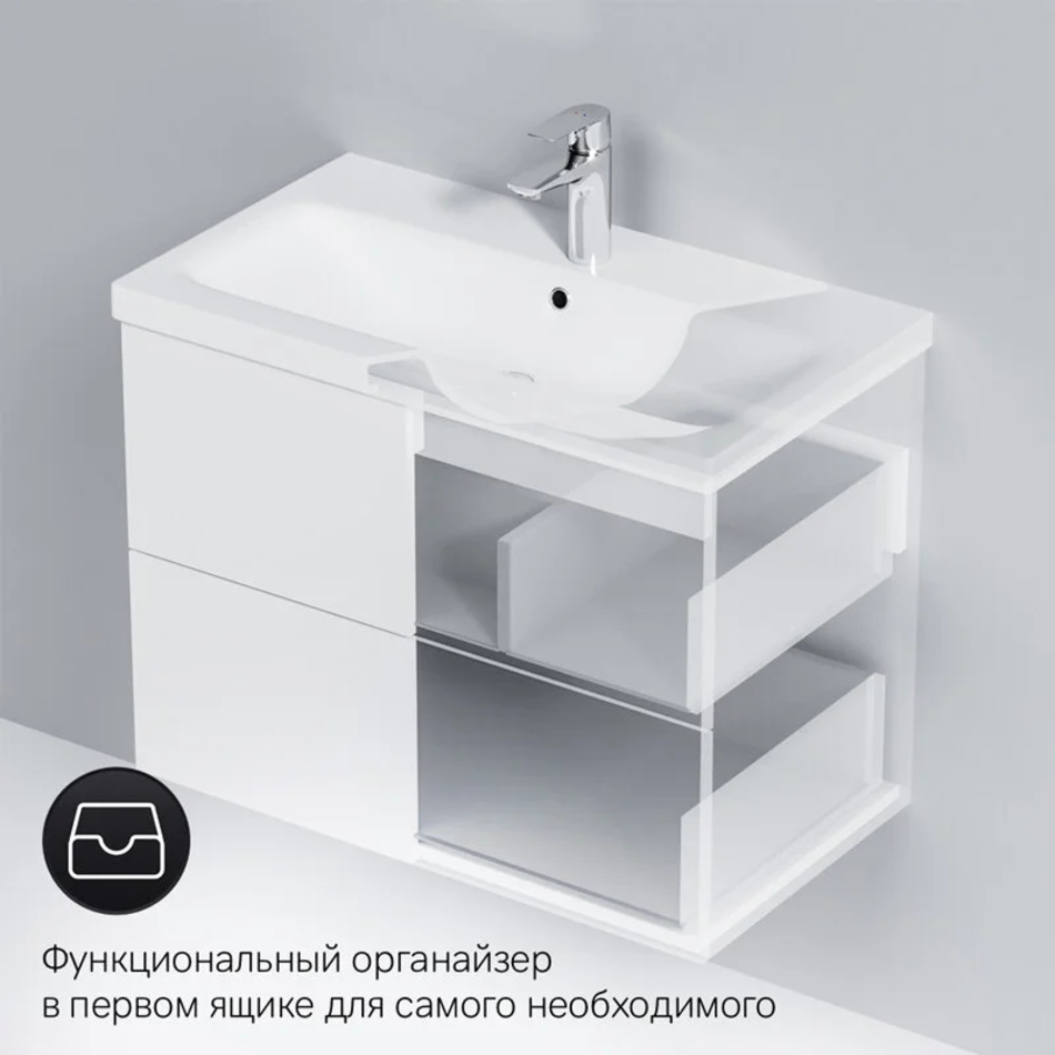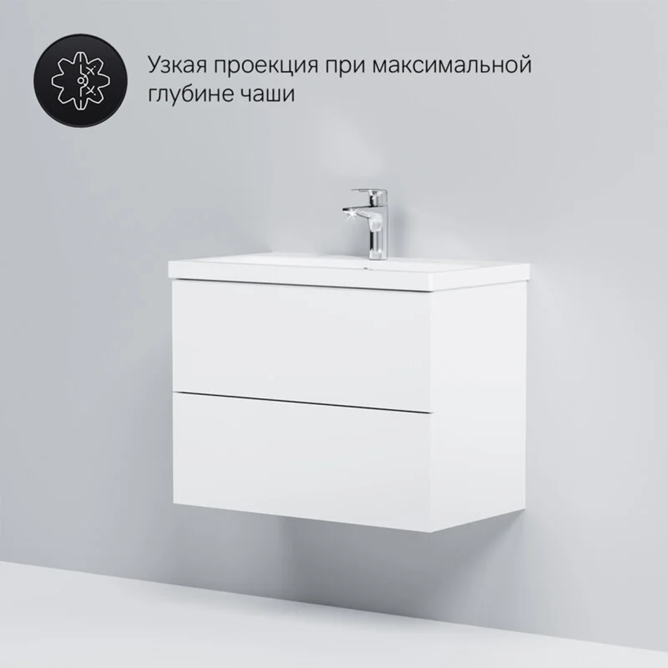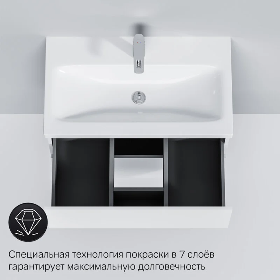 Тумба под раковину Am.Pm Gem 75 см, подвесная с 2 ящиками, белый, M90FHX07522WG