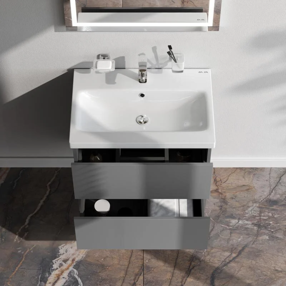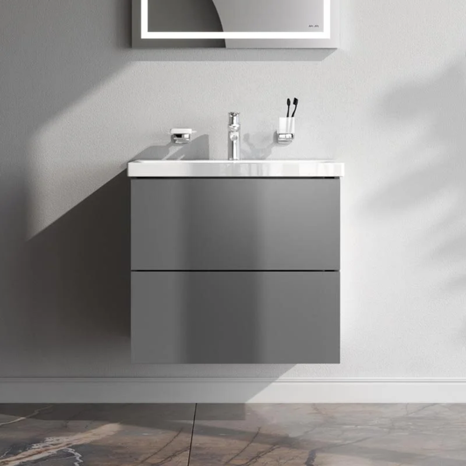 Тумба под раковину Am.Pm Gem M90FHX06022GM, подвесная, 60 см, 2 ящика push-to-open, графит матовый