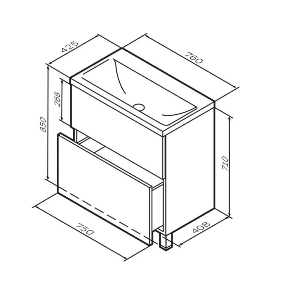 Тумба под раковину Am.Pm Gem M90FSX0752HF, 75 см, напольная, цвет орех