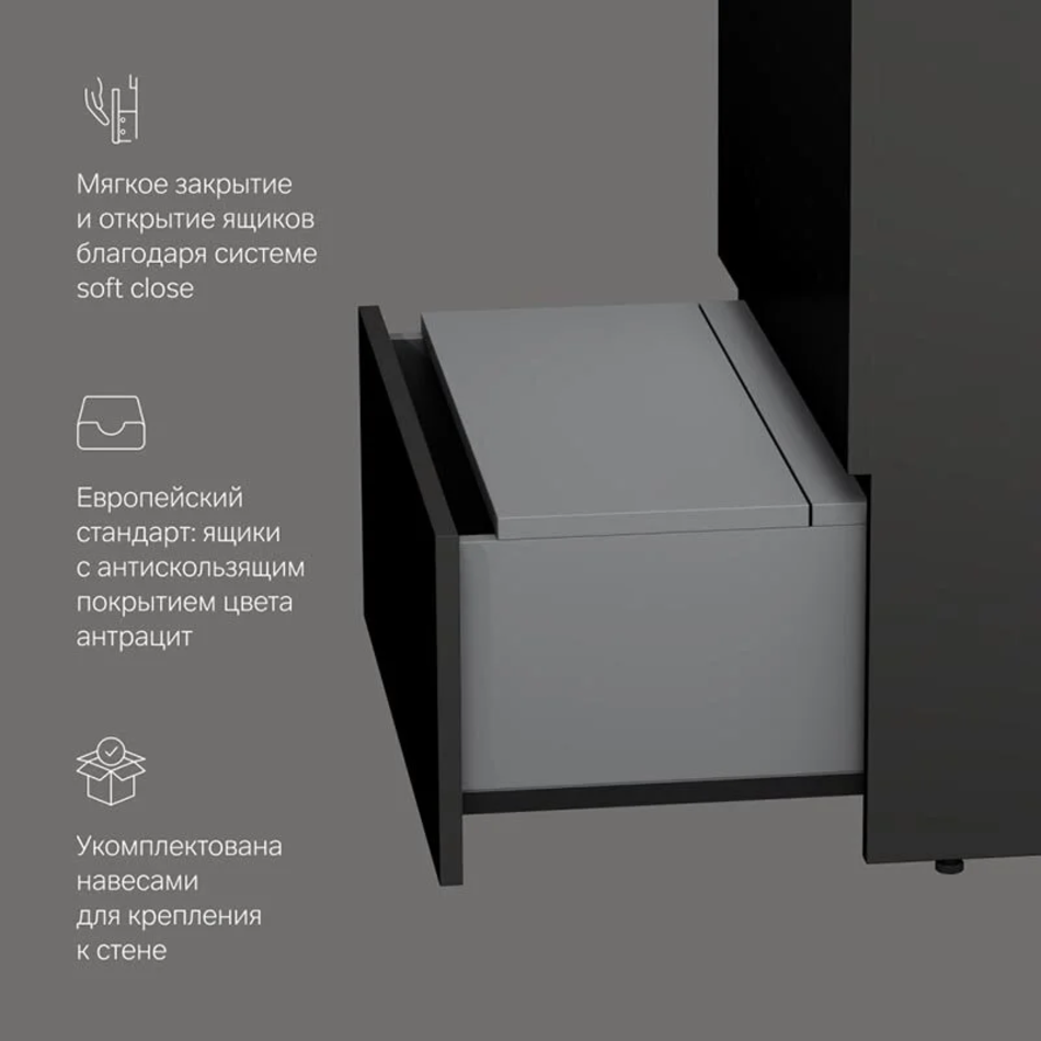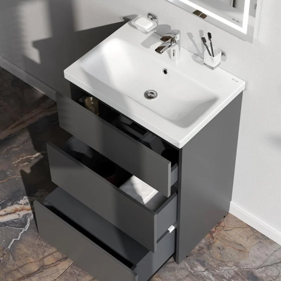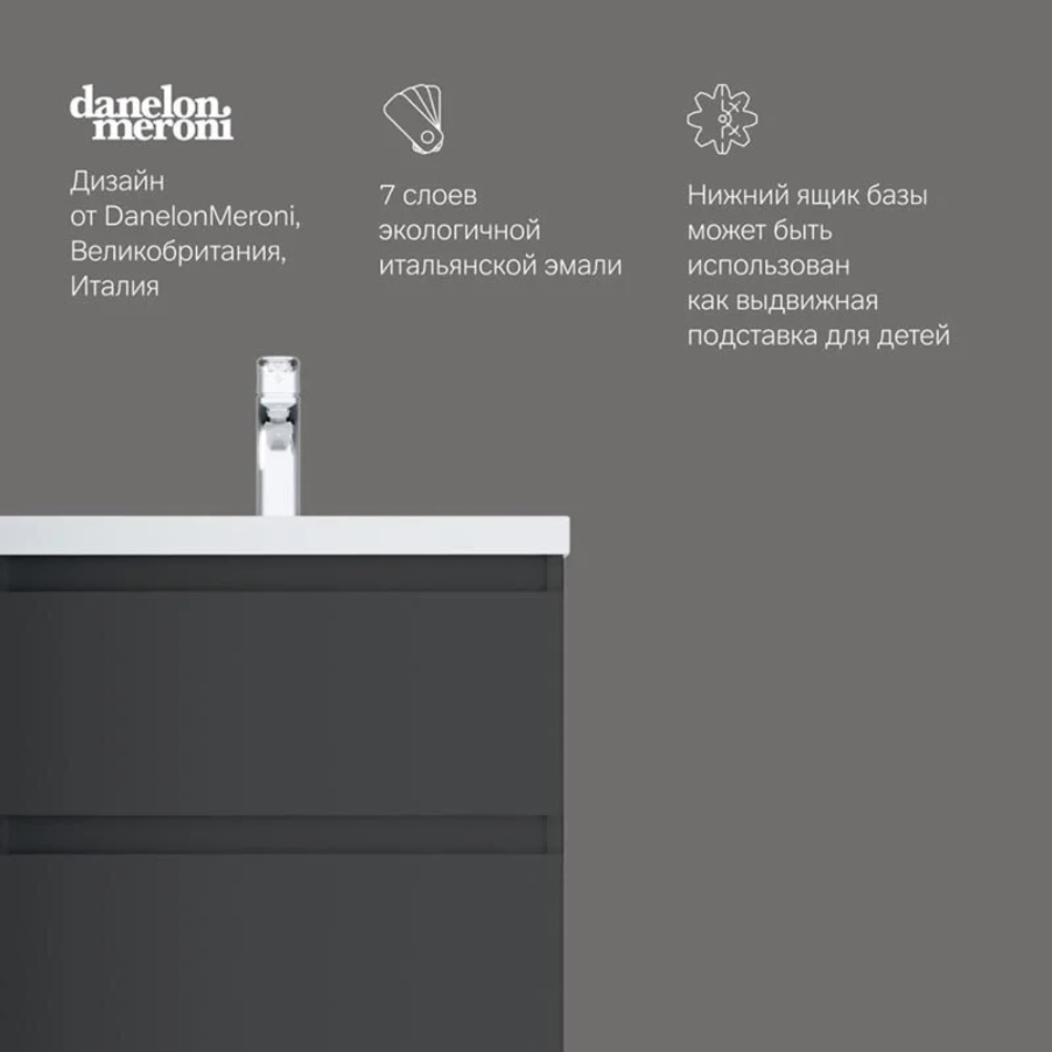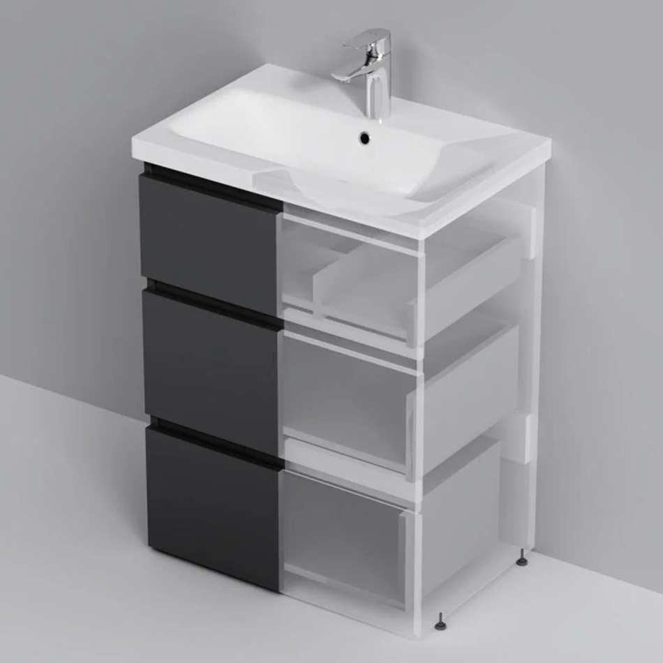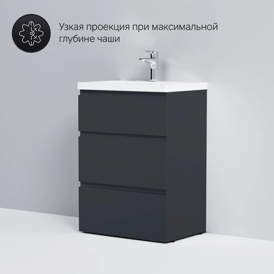Тумба под раковину Am.Pm Gem S M91FSX0602GM, напольная, 60 см, 3 ящика, со встроенной ступенькой для детей, графит матовый