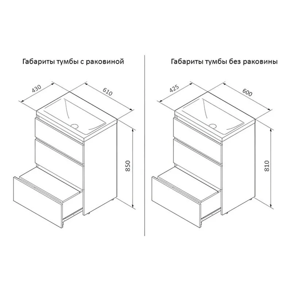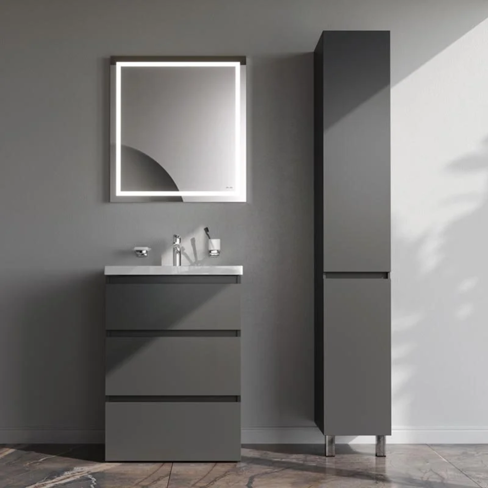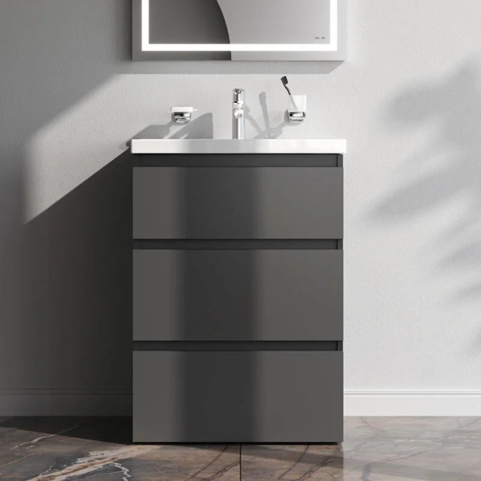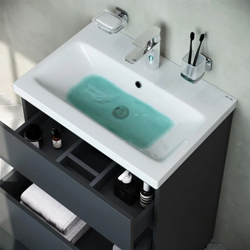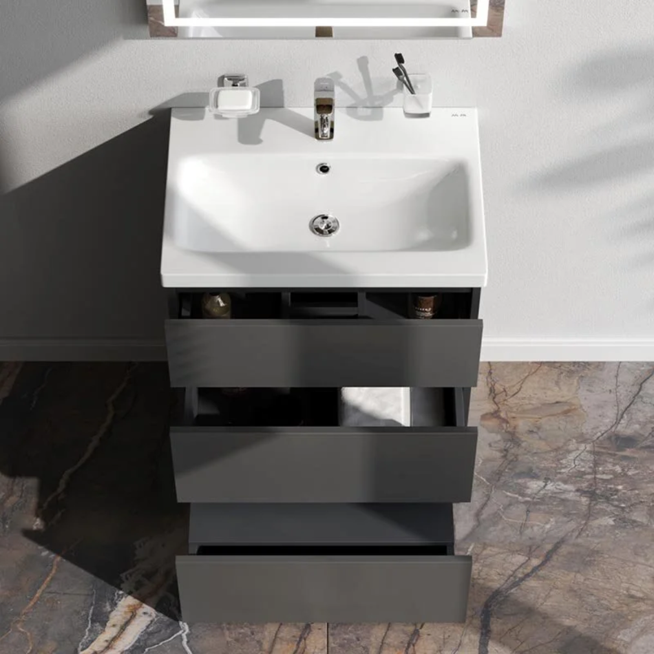 Тумба под раковину Am.Pm Gem S M91FSX0602GM, напольная, 60 см, 3 ящика, со встроенной ступенькой для детей, графит матовый