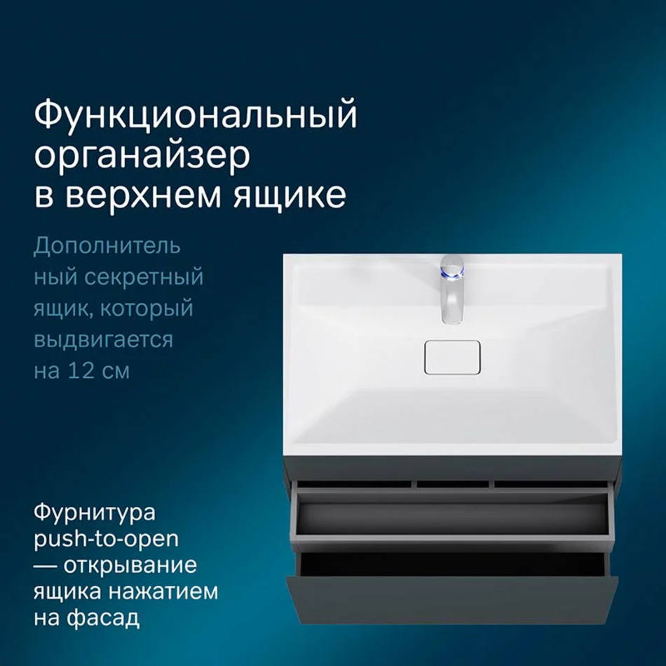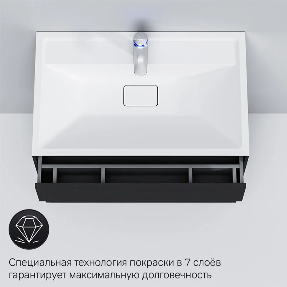 Мебель Inspire V2.0 – идеальный выбор для тех, кто привык к динамичному стилю жизни, ценит абсолютный комфорт и минимализм в интерьере. Вариативность размеров и цветов дает неограниченные возможности для создания стильного дизайна ванной комнаты с учетом ее планировки и индивидуальных предпочтений владельца. Ультратонкая раковина эргономичной формы с покрытием из мрамора идеально сочетается с мебельной базой. Инновационный подход к хранению: теперь пространство под раковиной эффективно используется. Мы предусмотрели дополнительный ящик, который выдвигается на 15 см и обеспечивает быстрый доступ к самым нужным вещам. Экологически чистые и долговечные полиакриловые эмали: специальная технология покраски в 7 слоев превосходит технологию нанесения автоэмали у ведущих немецких марок и обеспечивает насыщенный цвет в течение всего срока службы. Теперь в самых актуальных матовых оттенках. Премиальная фурнитура push-to-open от мирового производителя Blum и доводчики для мягкого плавного закрывания ящиков. Раковина M50AWPC0801WG - приобретается отдельно.