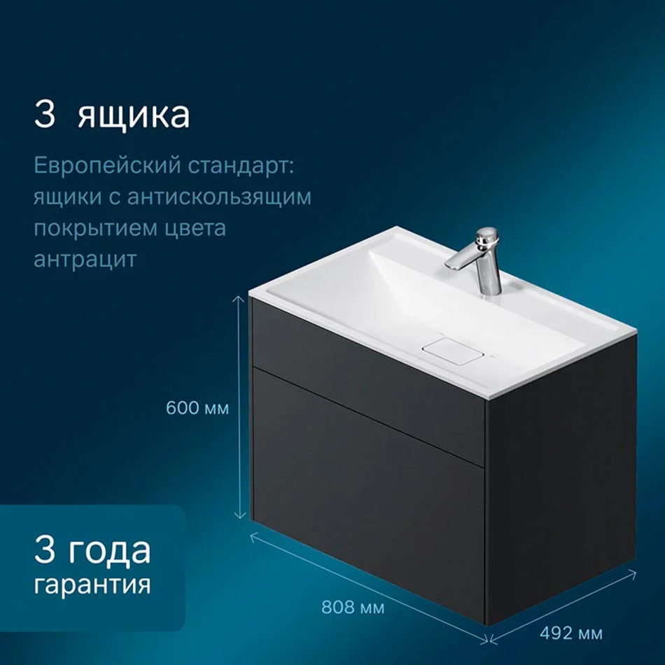 Тумба под раковину Am.Pm Inspire 2.0 M50AFHX0803GM подвесная 80 см, 3 ящика, цвет графит, матовый