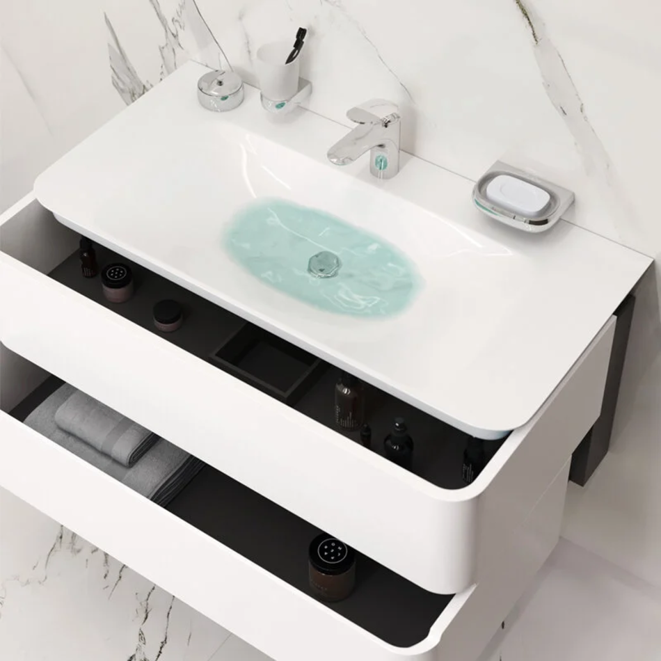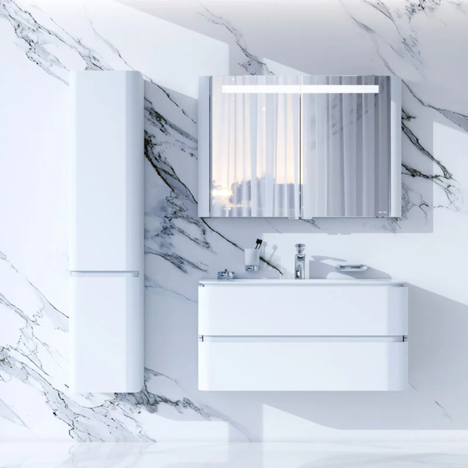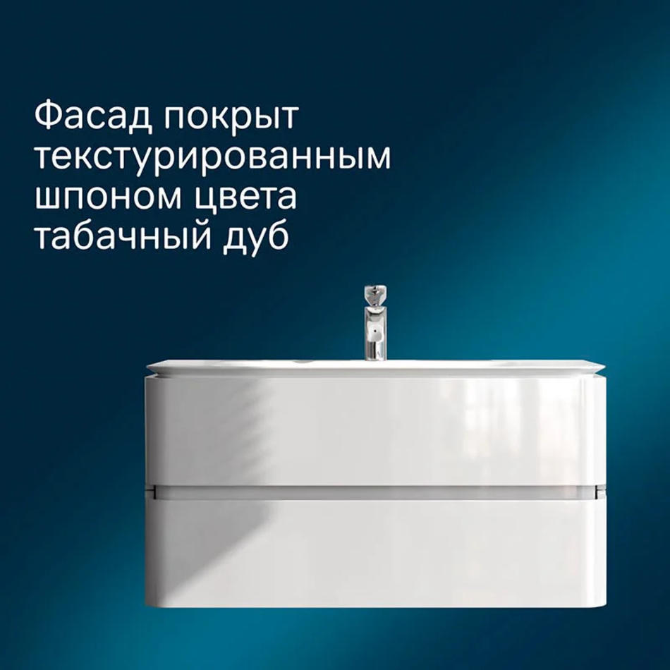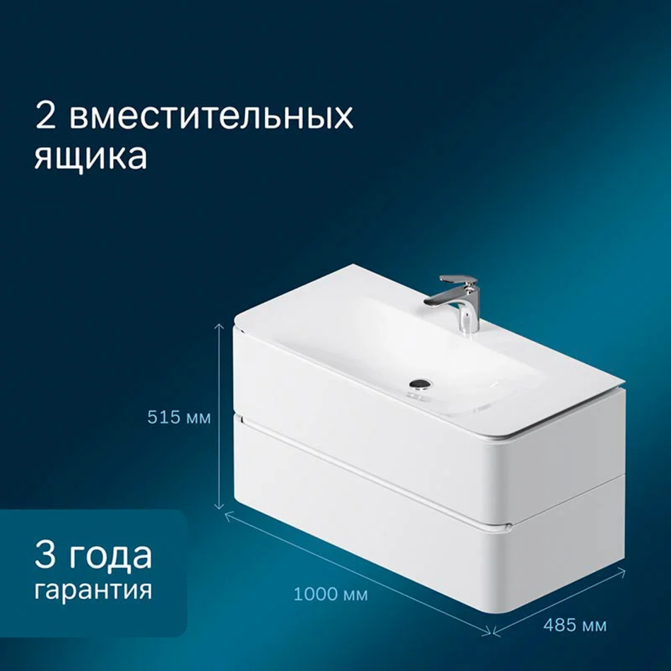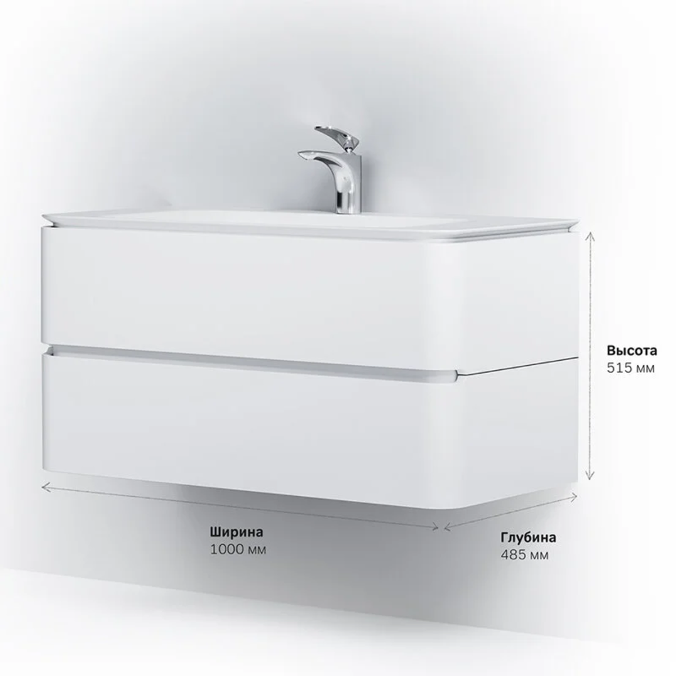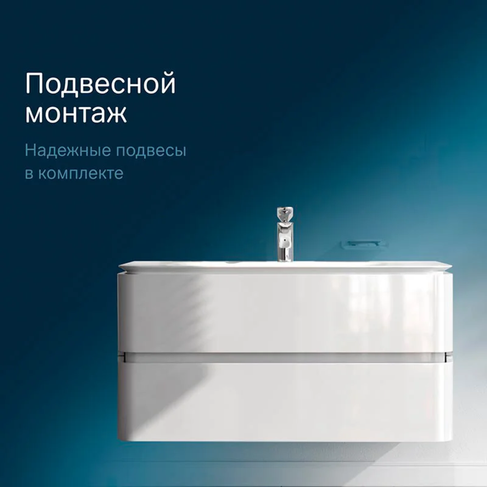Тумба подвесная 100 см, материал МДФ, покрытие эмаль, цвет белый глянец. Доводчики и два ящика в комплекте.