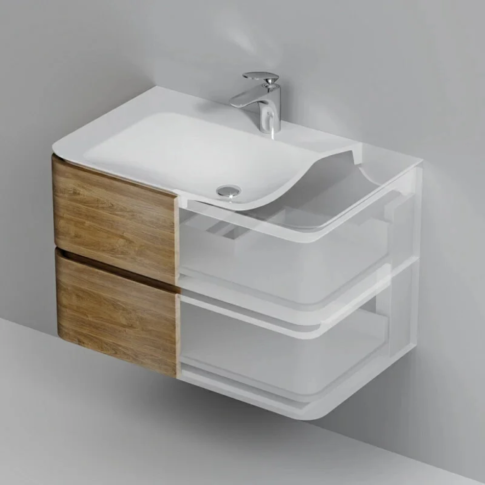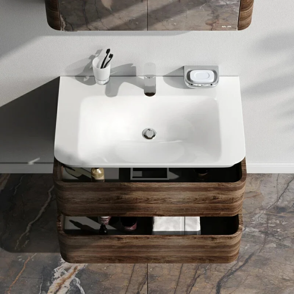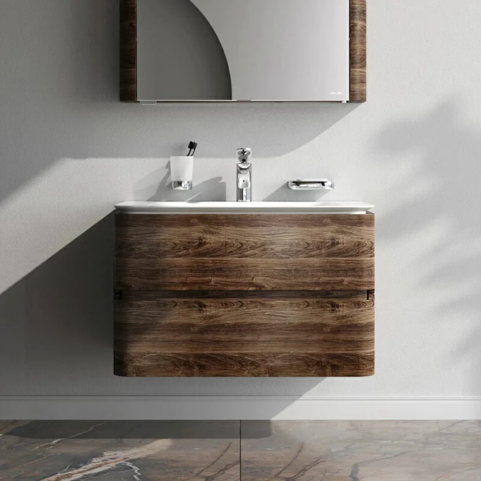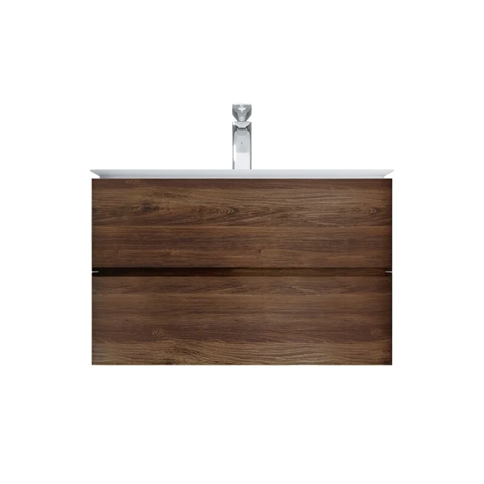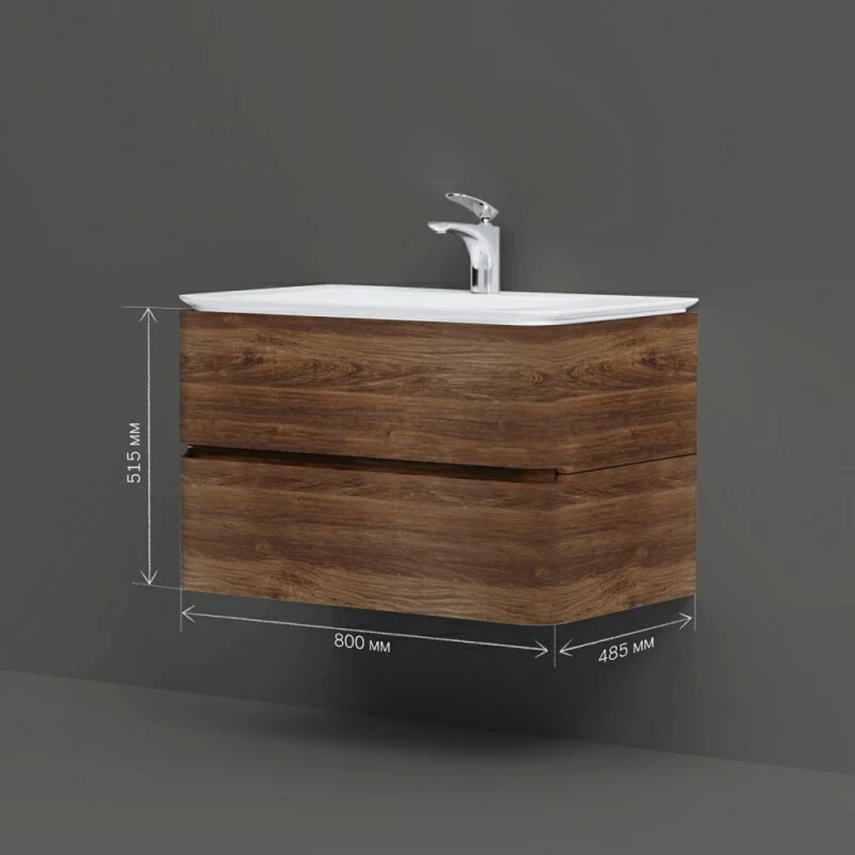 Тумба подвесная 80 см, материал МДФ, покрытие эмаль, цвет орех. Доводчики и два ящика в комплекте.