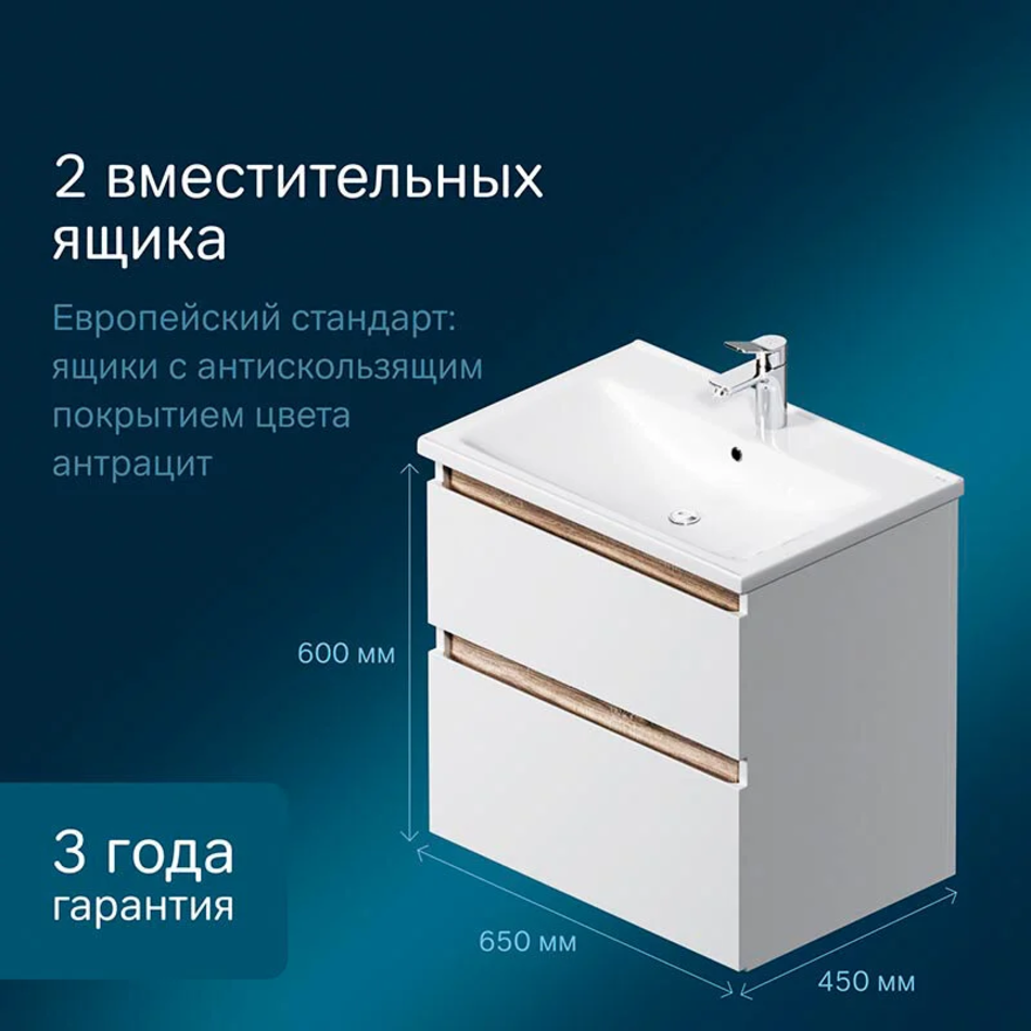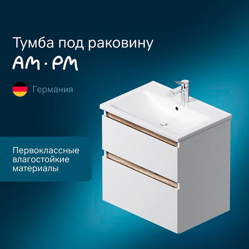 Тумба под раковину Am.Pm X-Joy M85AFHX0652WG, подвесная, 65 см, 2 ящика, белый глянец