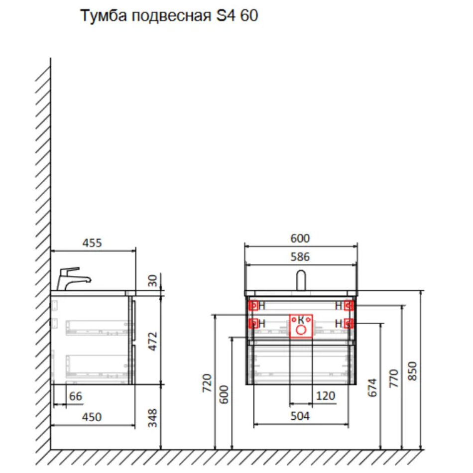 Тумба под раковину Aquame S4 AQM900460WH, 60 см, подвесная, цвет белый