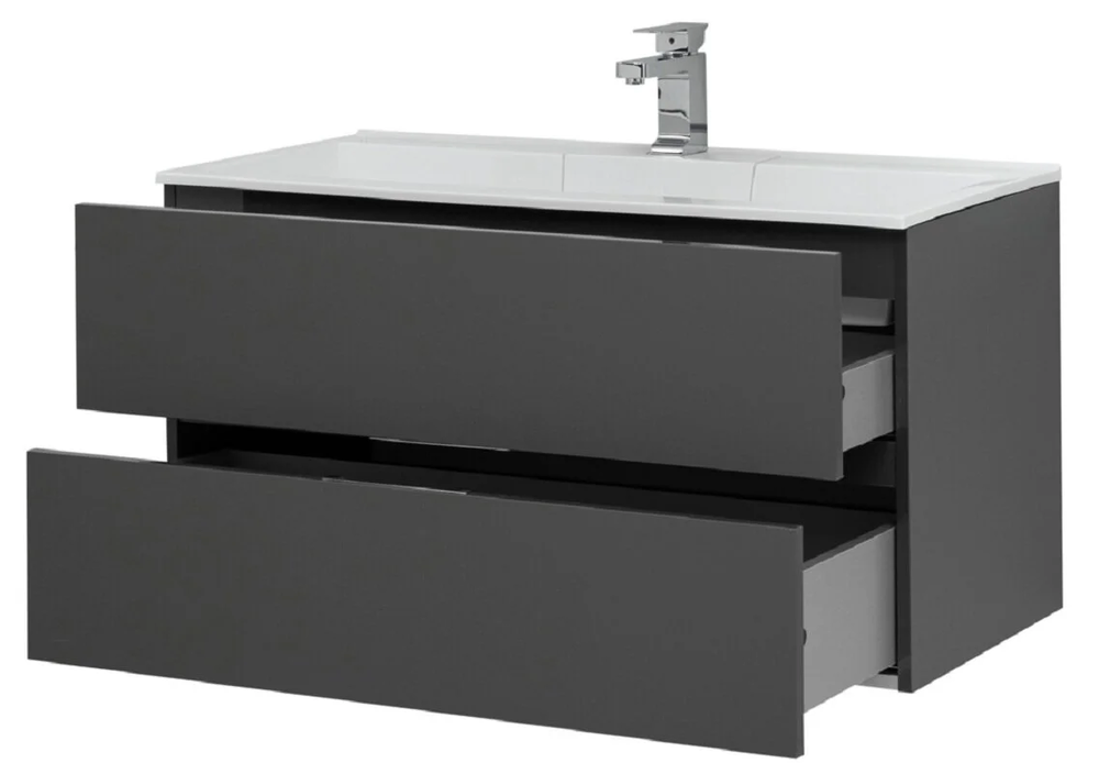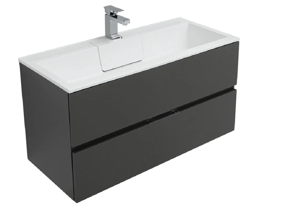Тумба подвесная Размер: 99*45*51.3 см Выдвижные ящики:2 Механизм доводчика Материал: ЛДСП Покрытие: краска/глянец Цвет фурнитуры: хром Цвет: серый антрацит