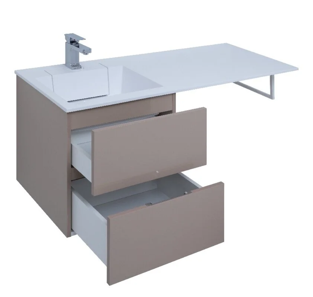 Тумба подвесная Размер: 48 х 47.5 х 52.6 см Выдвижные ящики:2 Механизм доводчика Материал: ЛДСП Покрытие: эмаль/глянец Цвет фурнитуры: хром Цвет: капучино Вес: 15 кг