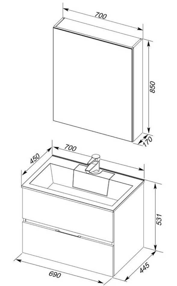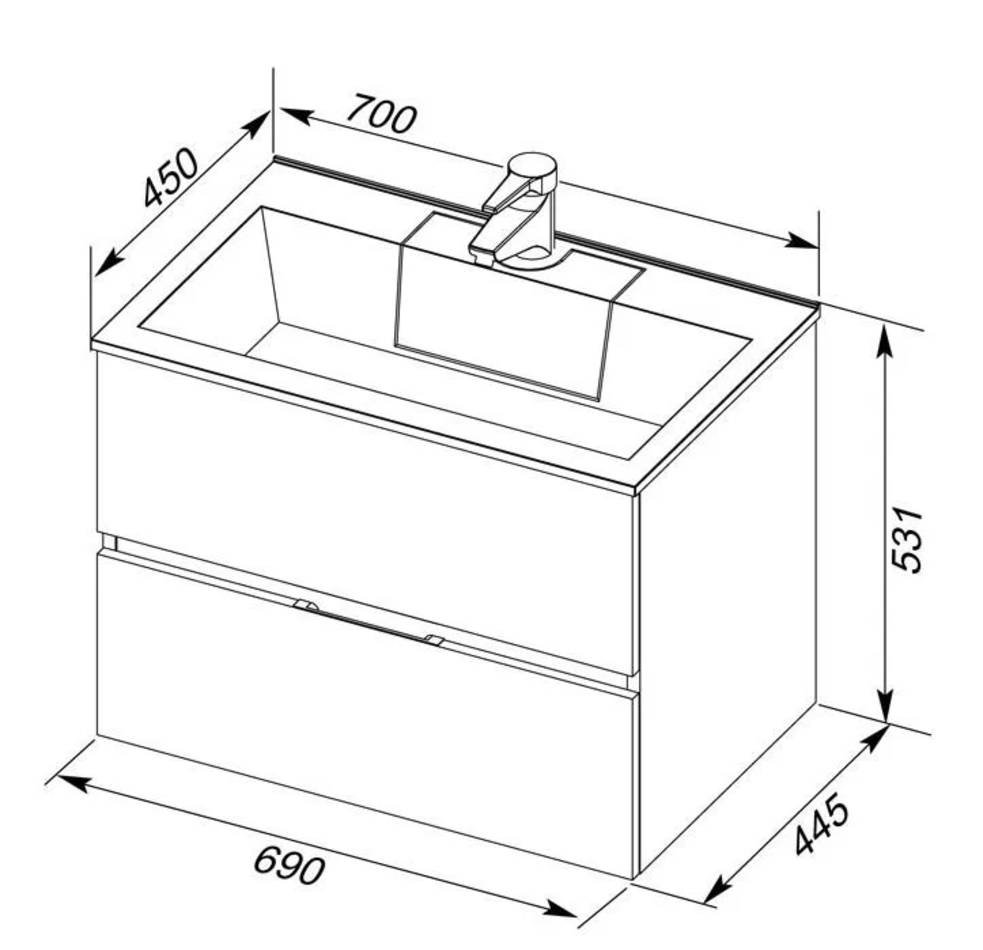 Тумба подвесная Размер: 70*45*53.1 см Выдвижные ящики:2 Механизм доводчика Материал: ЛДСП Покрытие: краска/глянец Цвет фурнитуры: хром Цвет: белый
