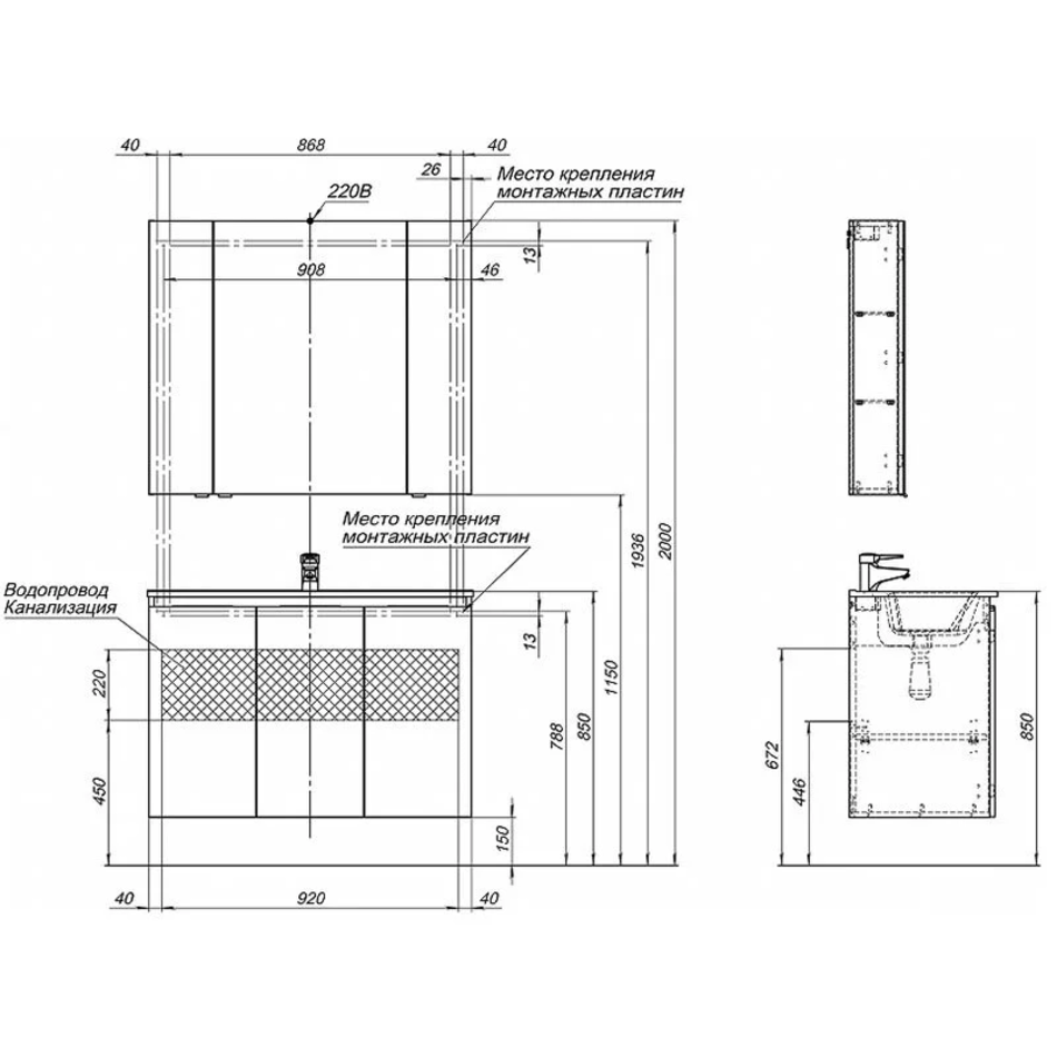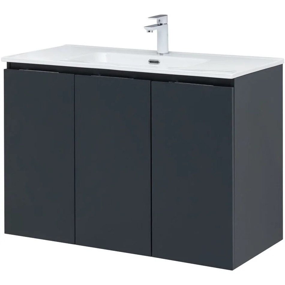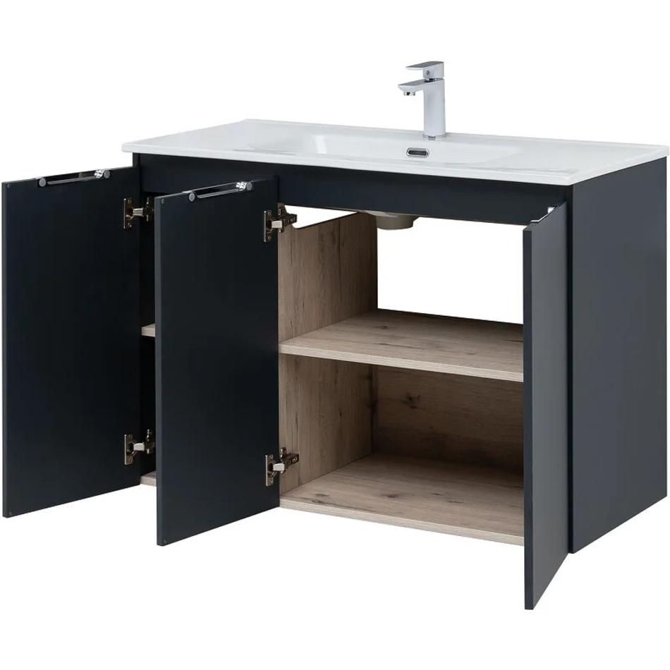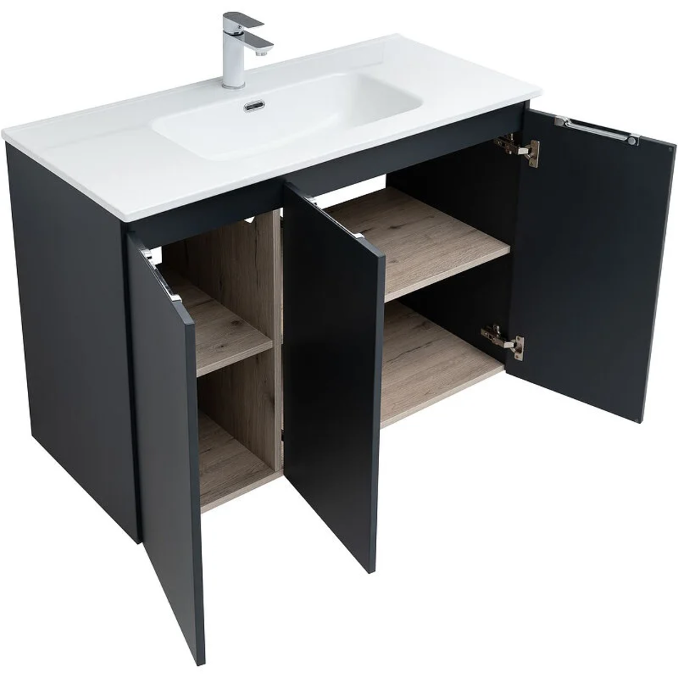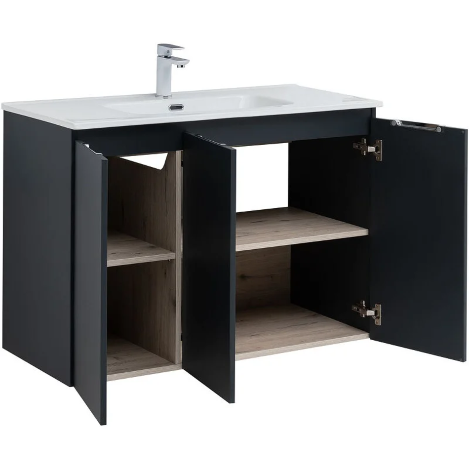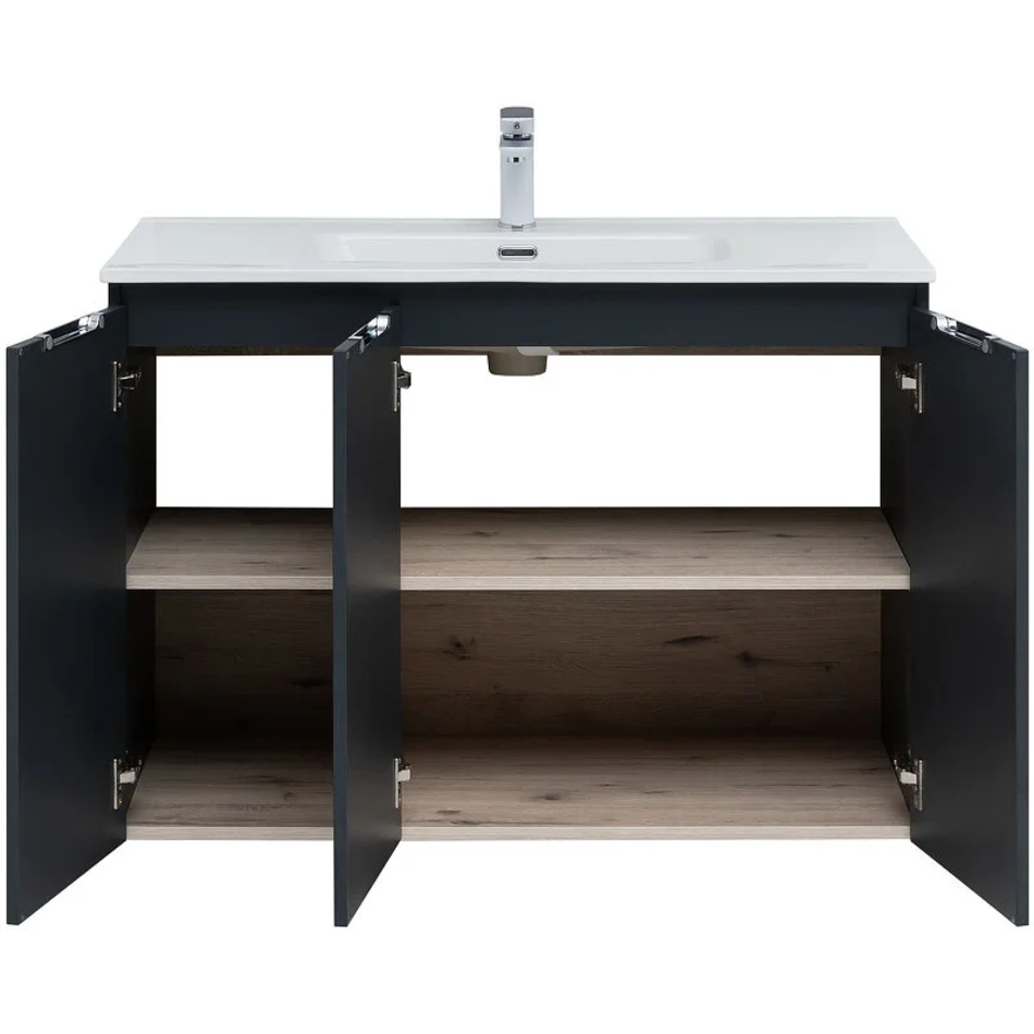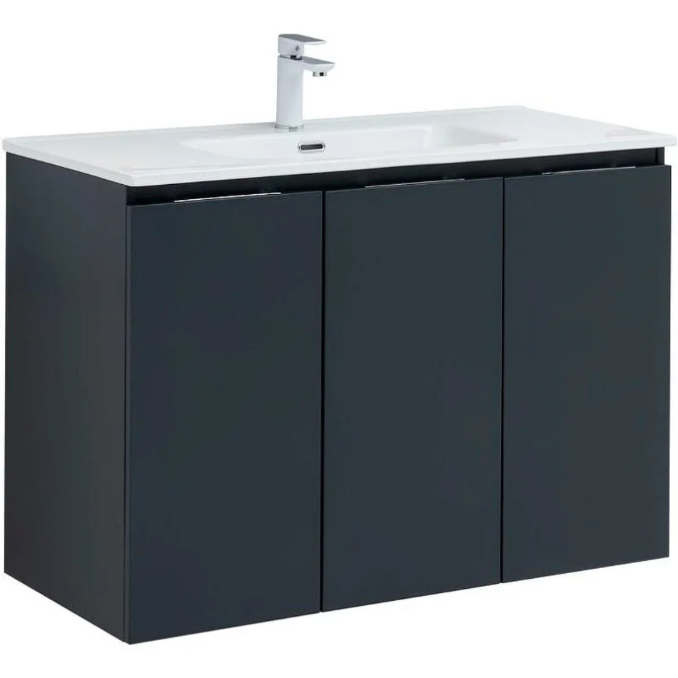 Тумба под раковину Aquanet Алвита New 100 см, подвесная, 3 дверцы, цвет антрацит матовый, 277531