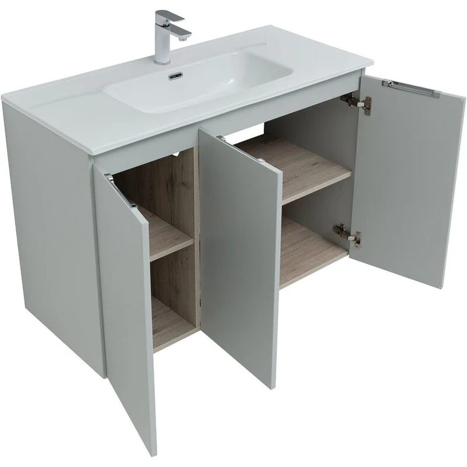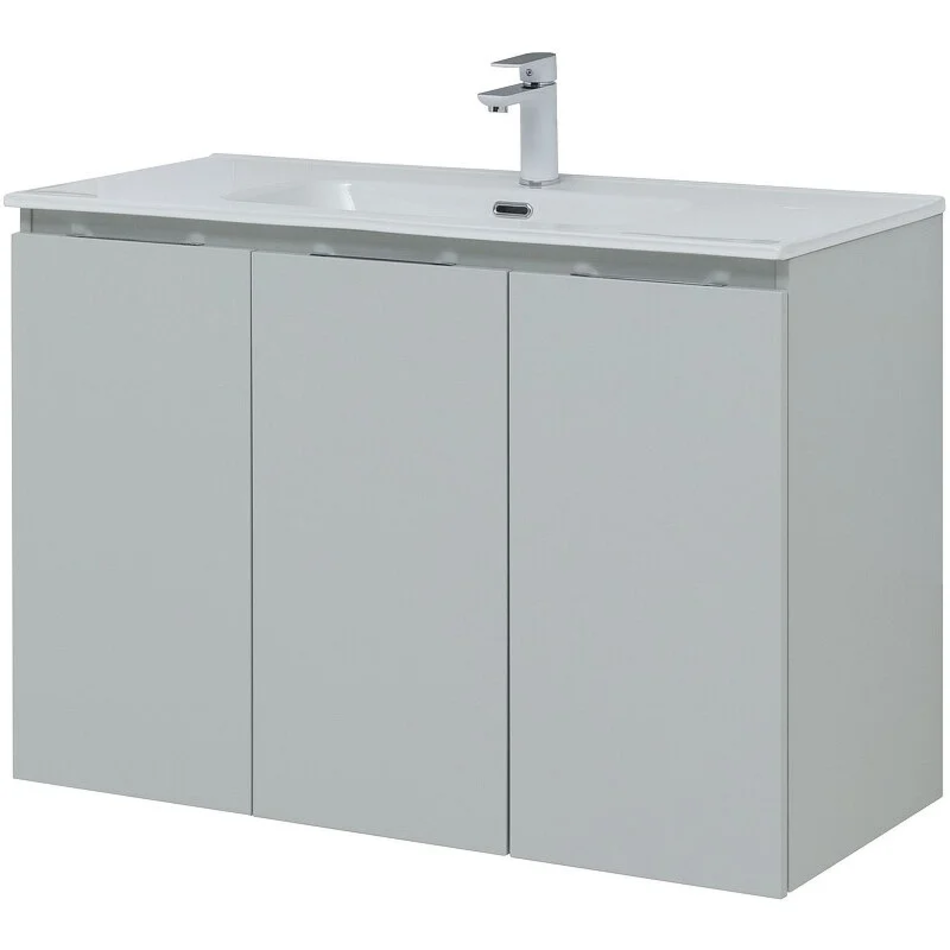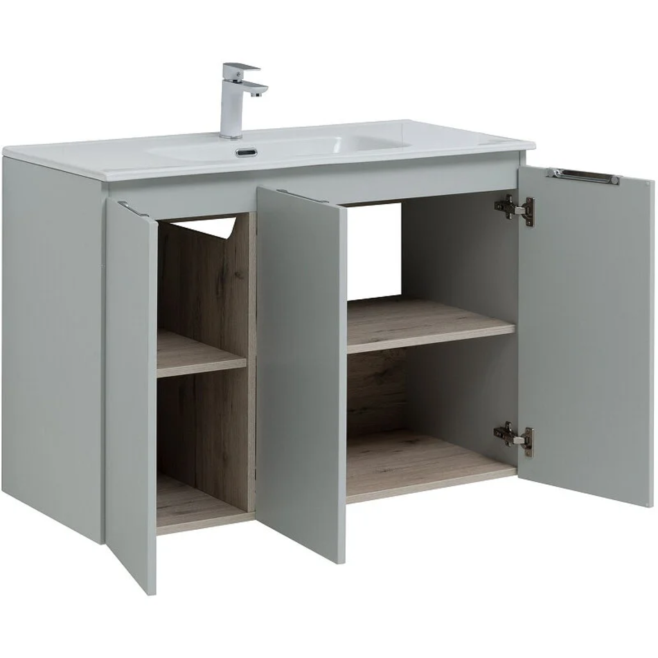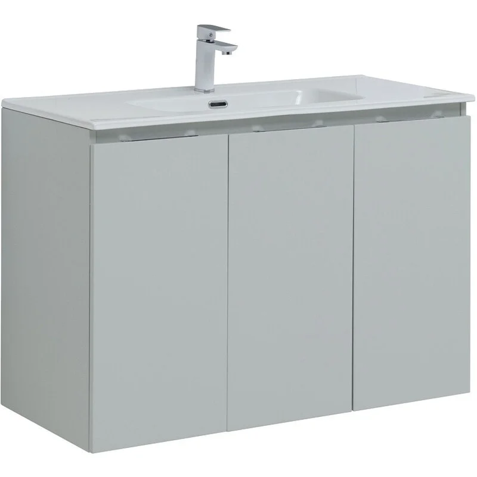 Тумба под раковину Aquanet Алвита New 100 см, подвесная, 3 дверцы, цвет серый матовый, 277532