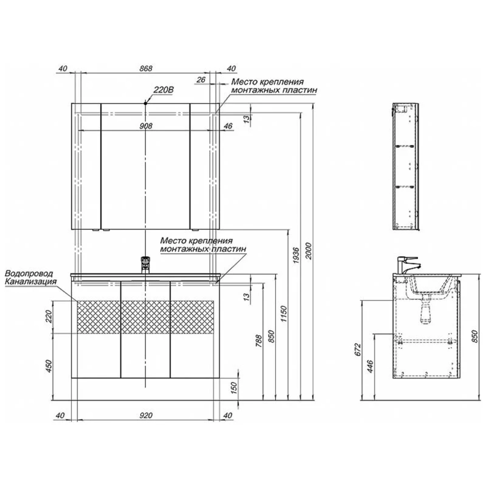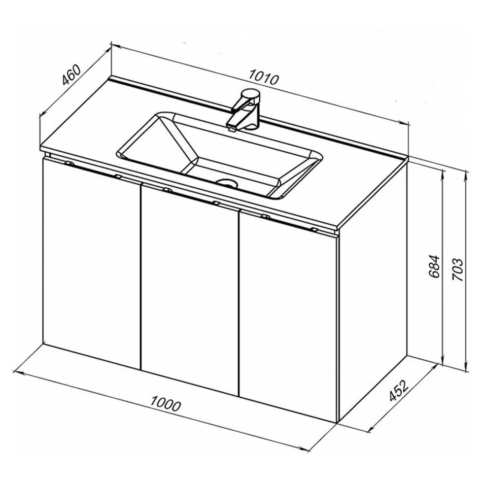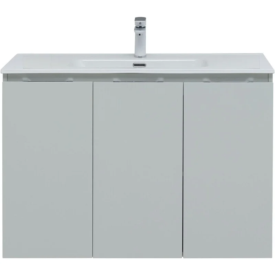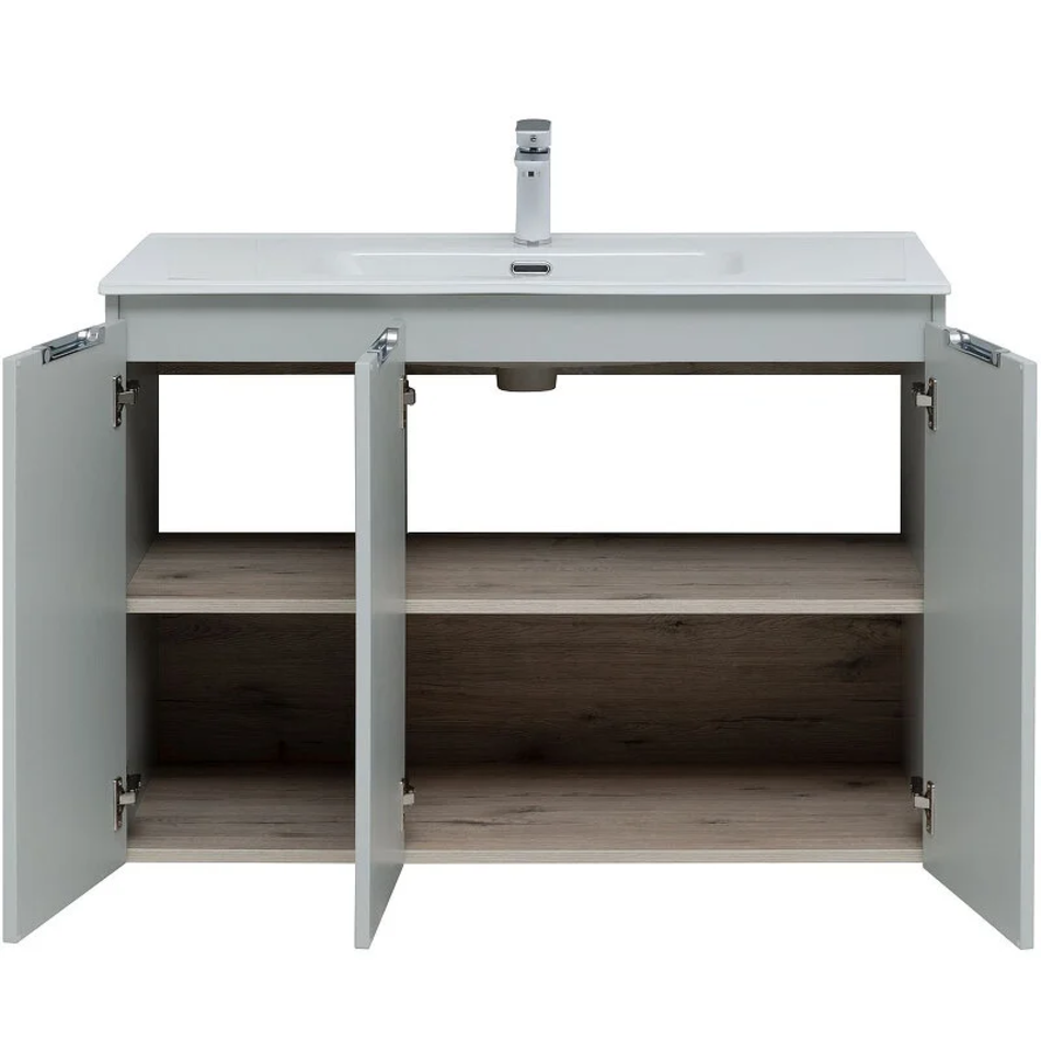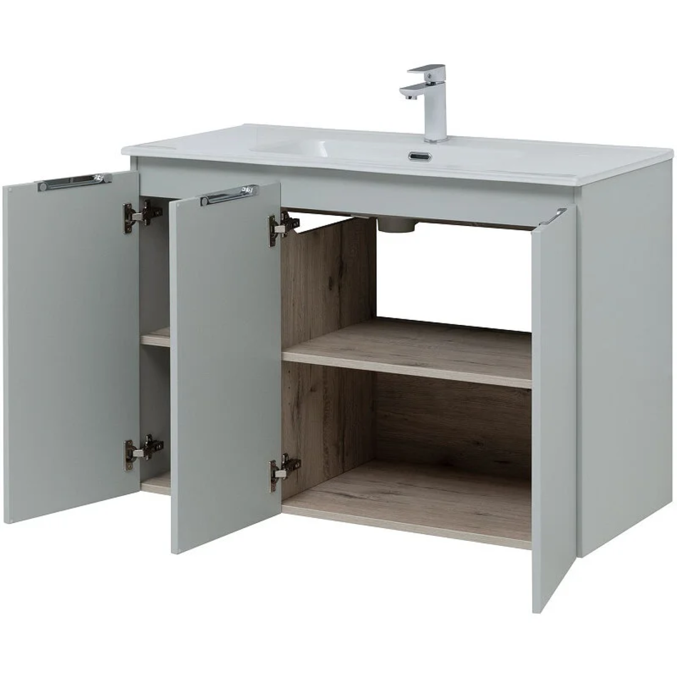 Тумба под раковину Aquanet Алвита New 100 см, подвесная, 3 дверцы, цвет серый матовый, 277532