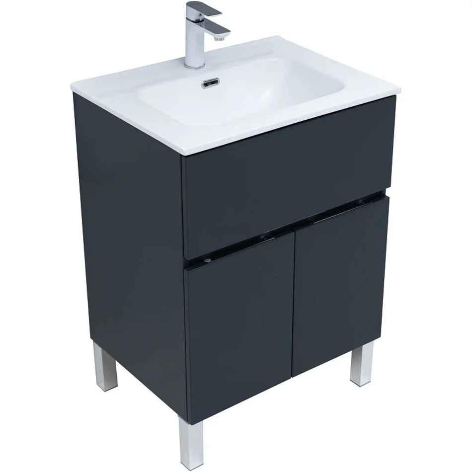 Тумба под раковину Aquanet Алвита New 60 см, напольная, цвет антрацит матовый, 277547
