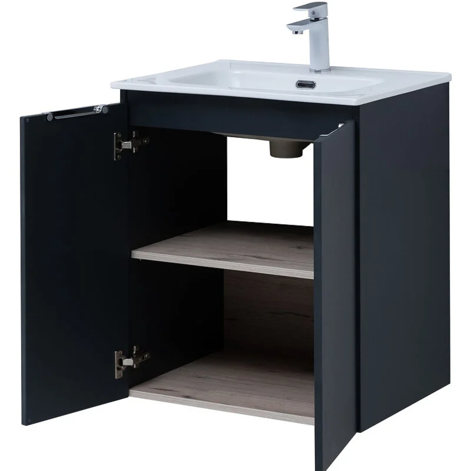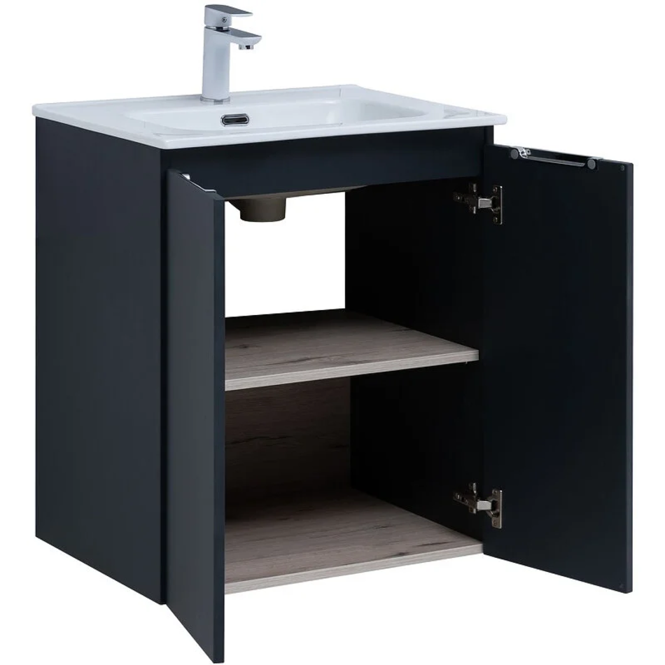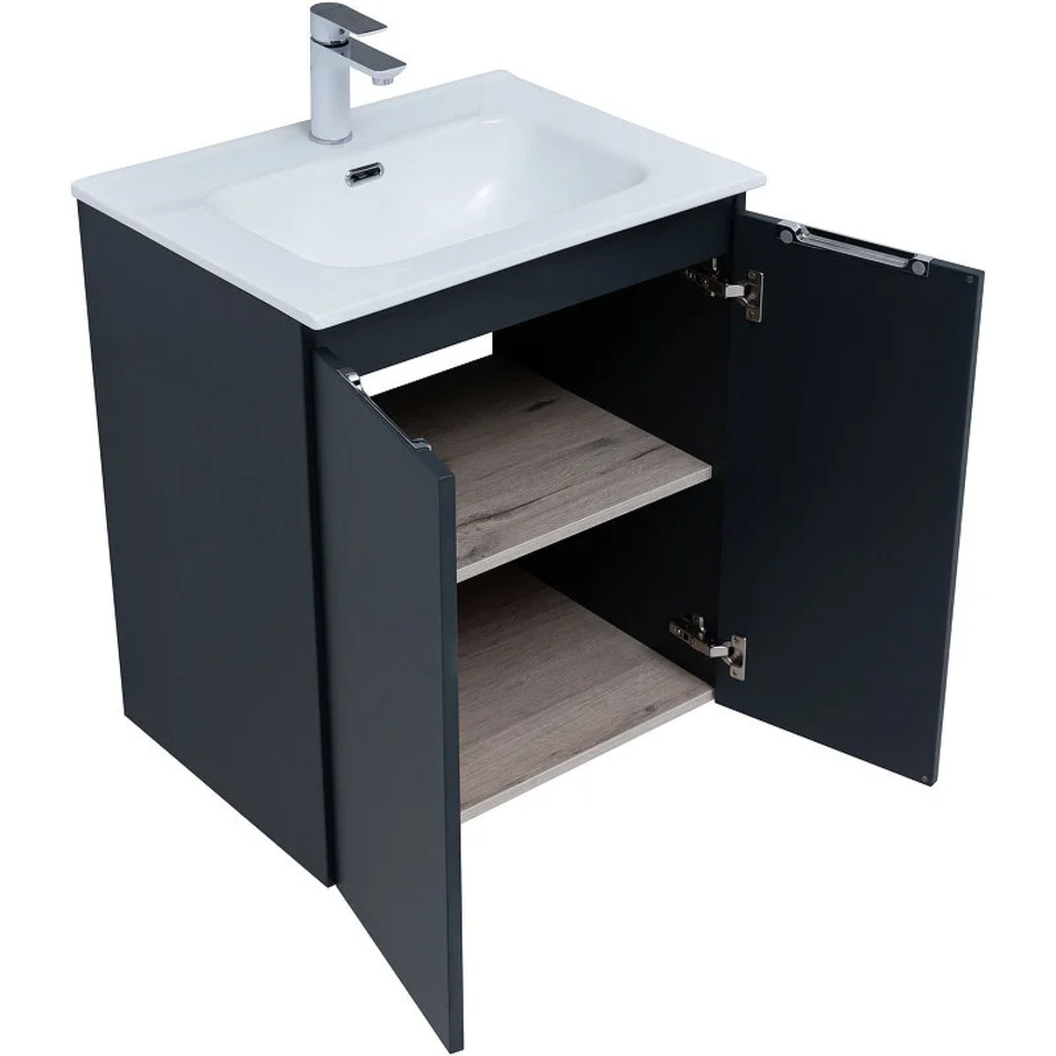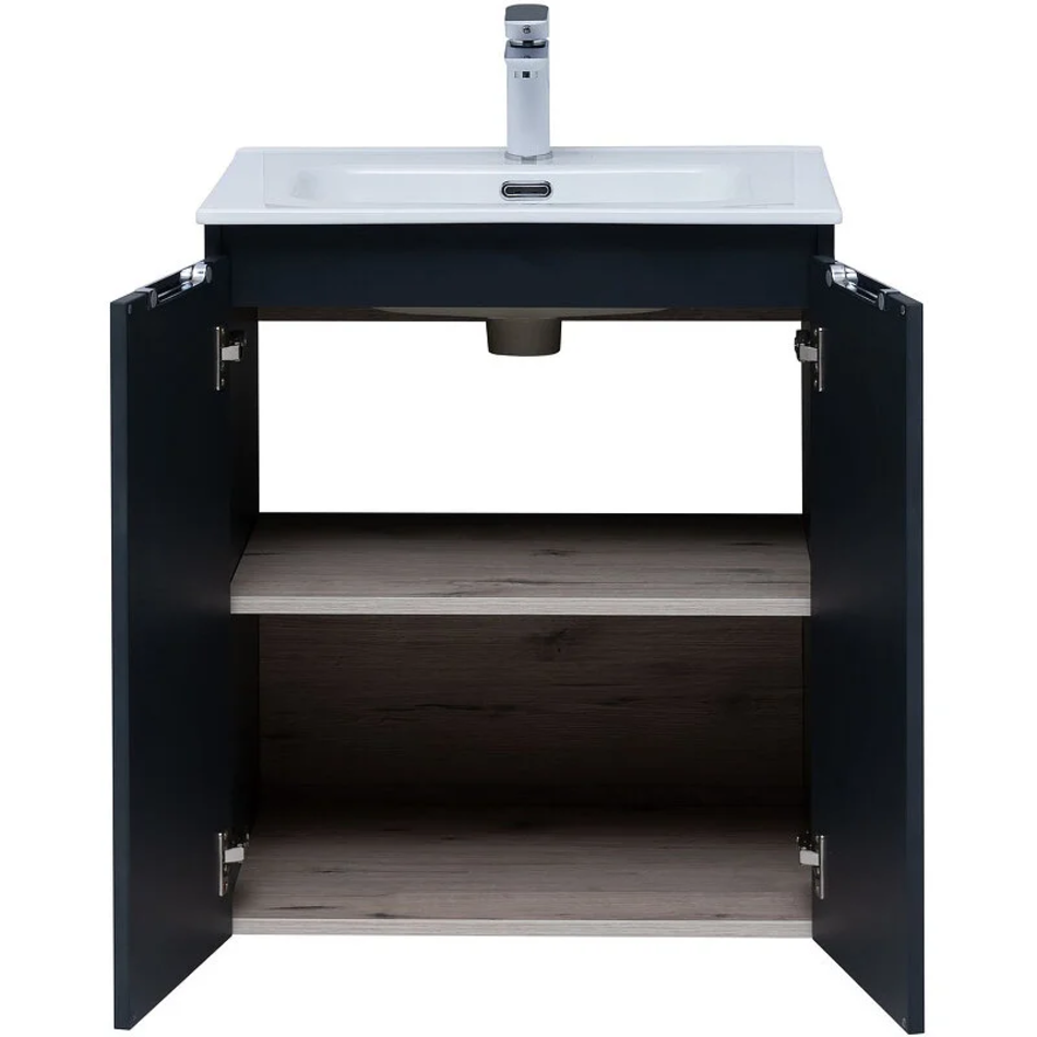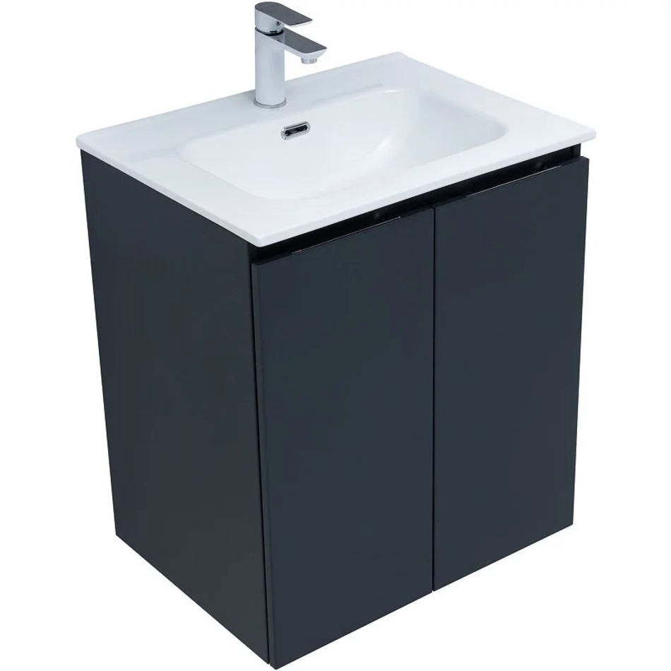Тумба под раковину Aquanet Алвита New 60 см, подвесная, 2 дверцы, цвет антрацит матовый, 277523
