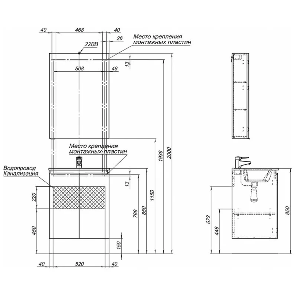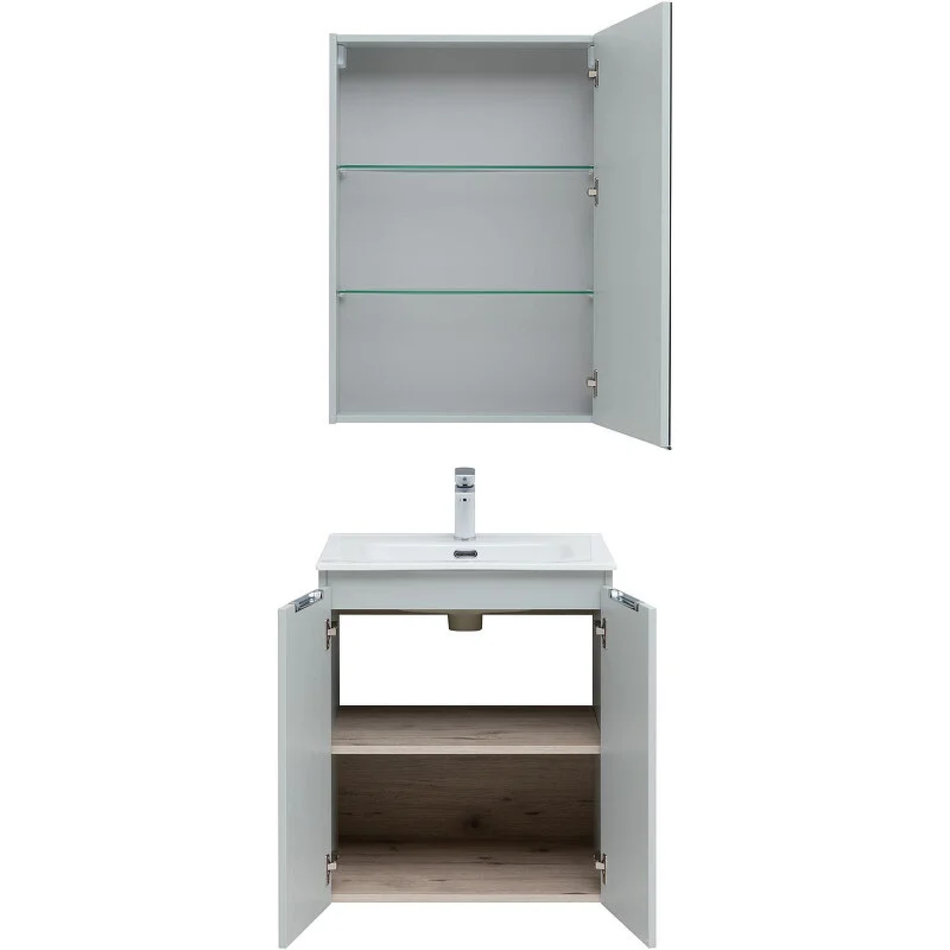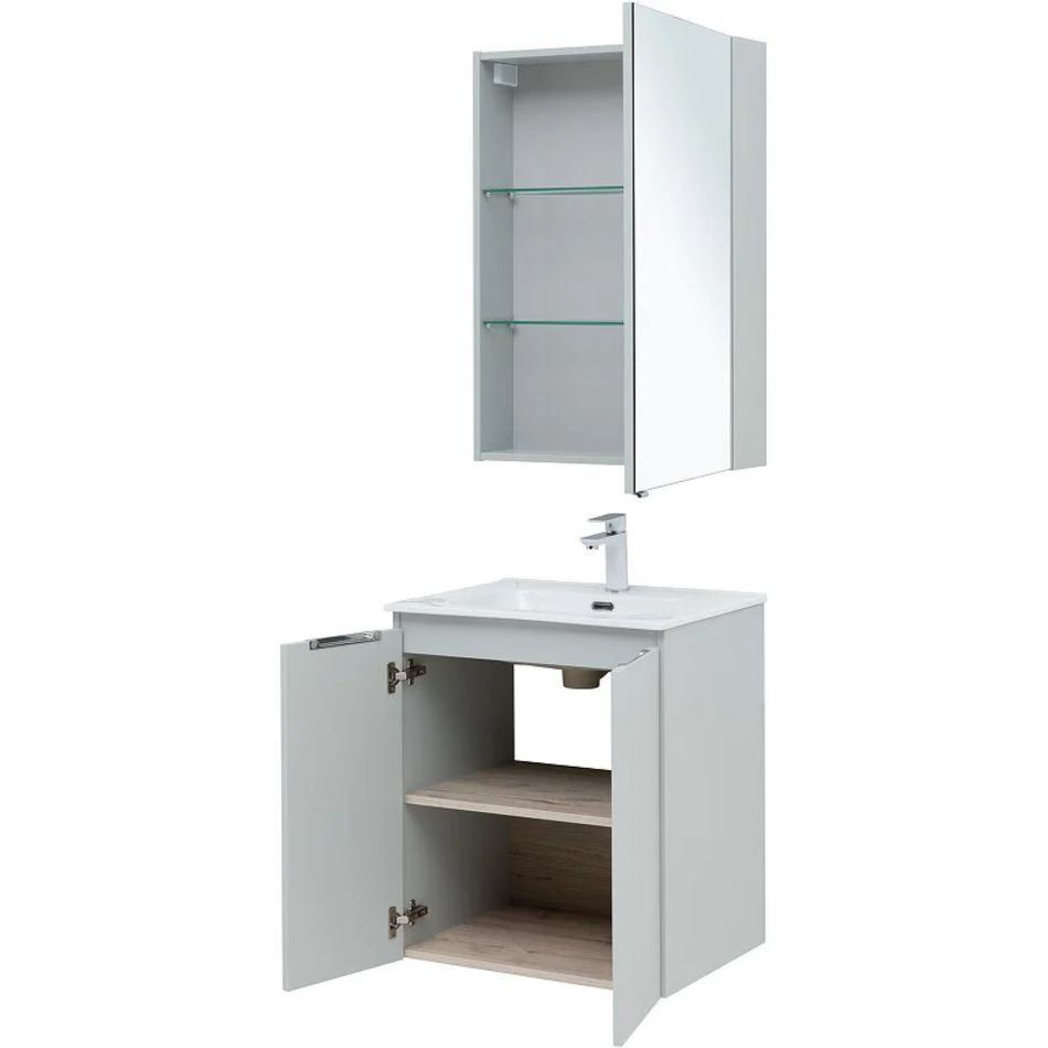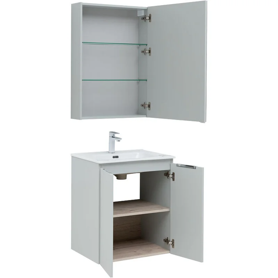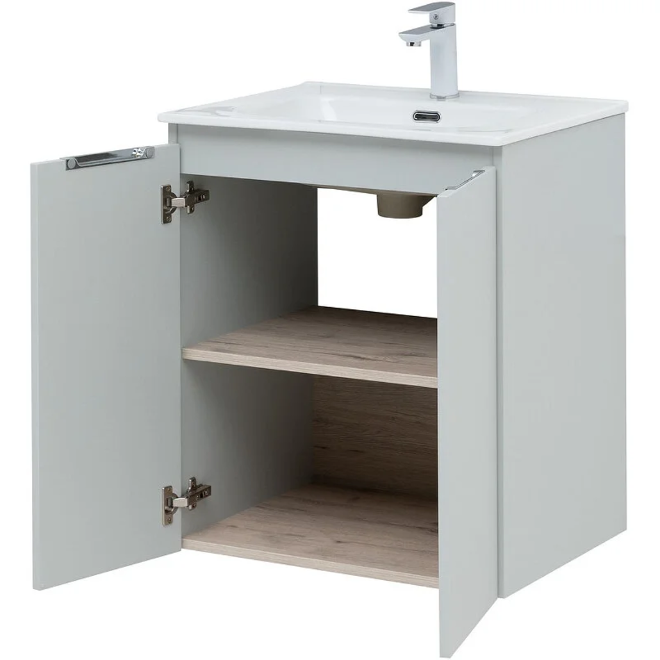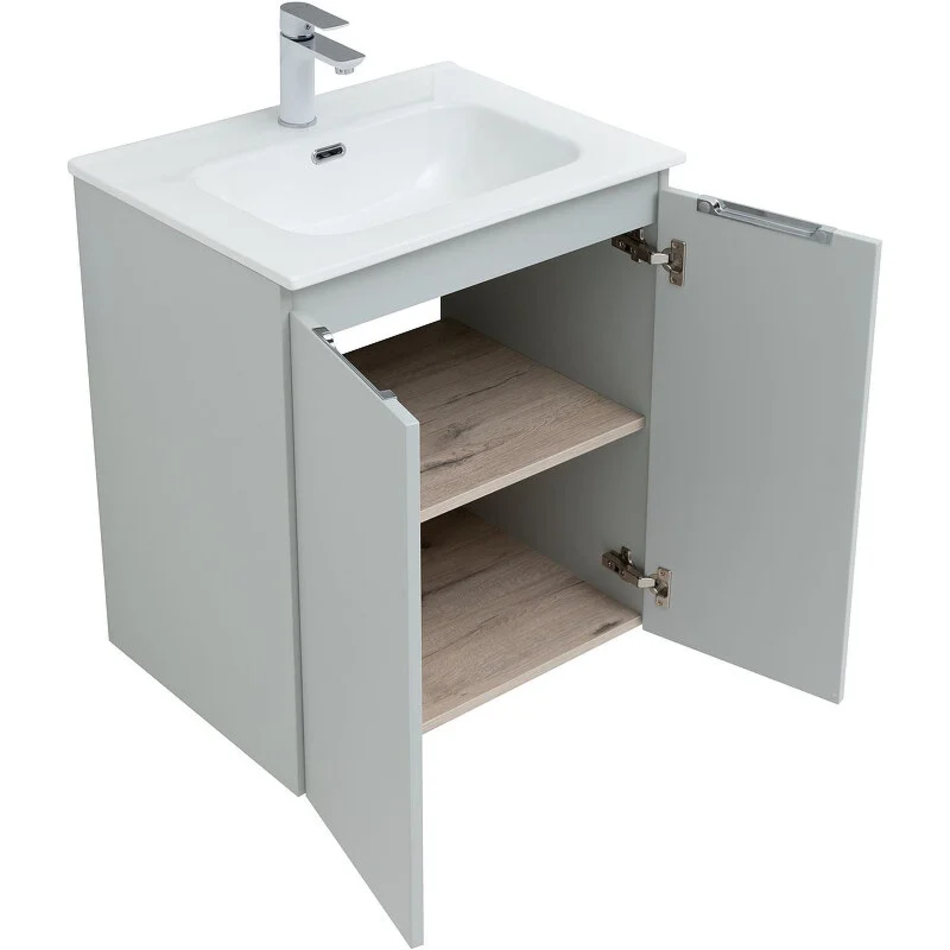 Тумба под раковину Aquanet Алвита New 60 см, подвесная, 2 дверцы, цвет серый матовый, 277524