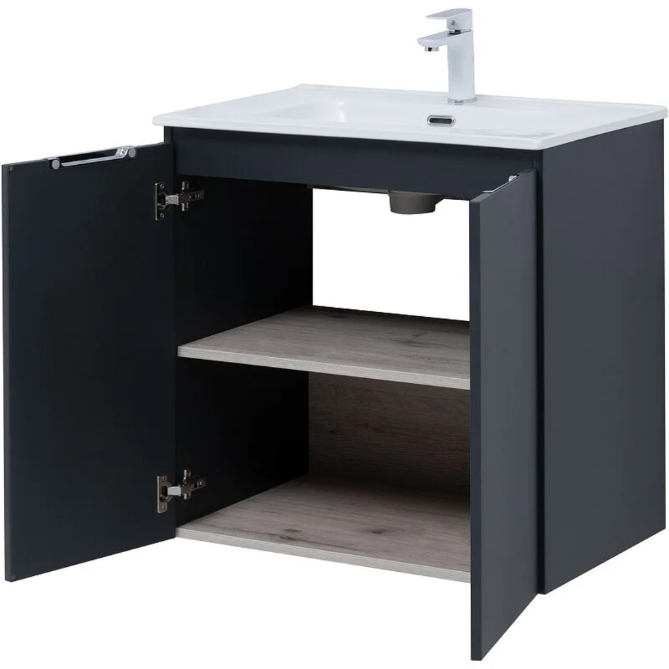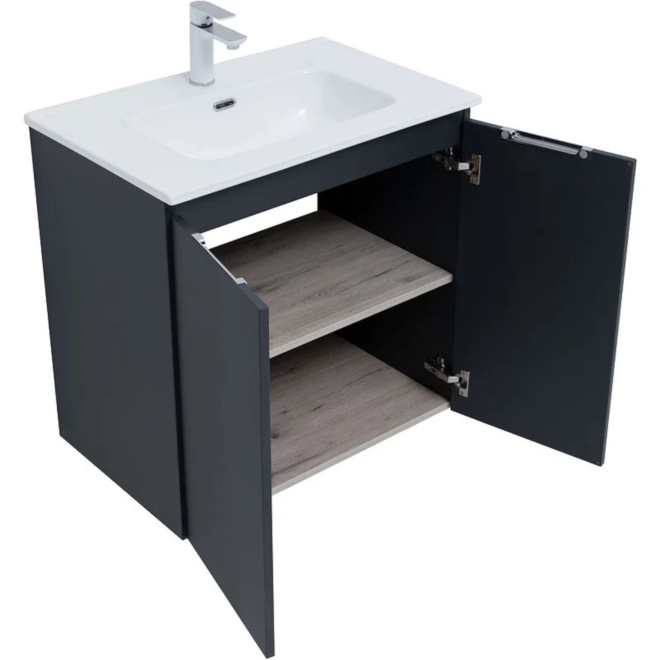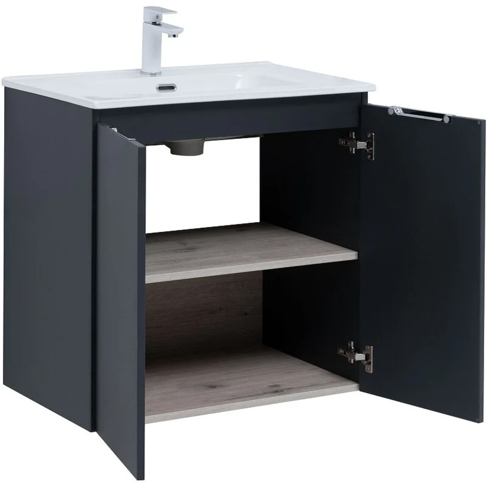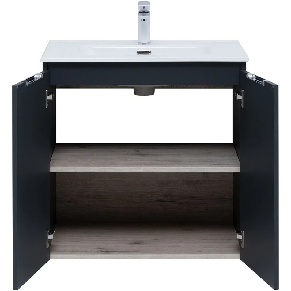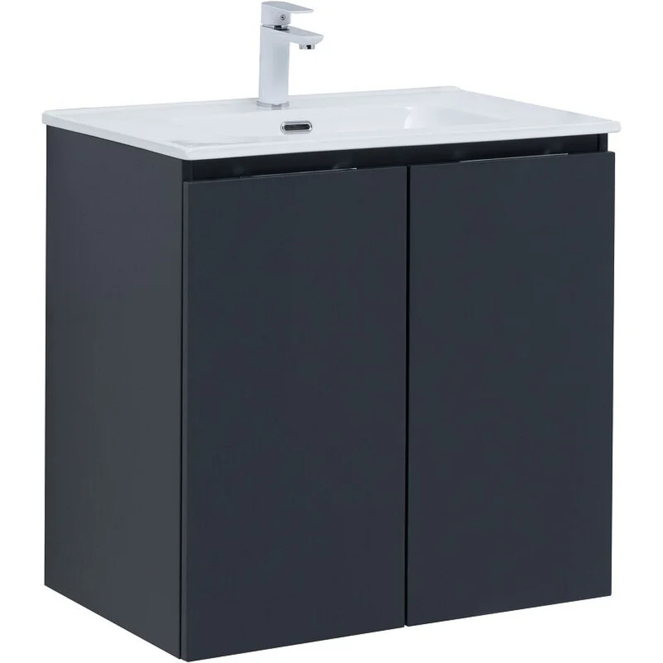 Тумба под раковину Aquanet Алвита New 70 см, подвесная, 2 дверцы, цвет антрацит матовый, 303904