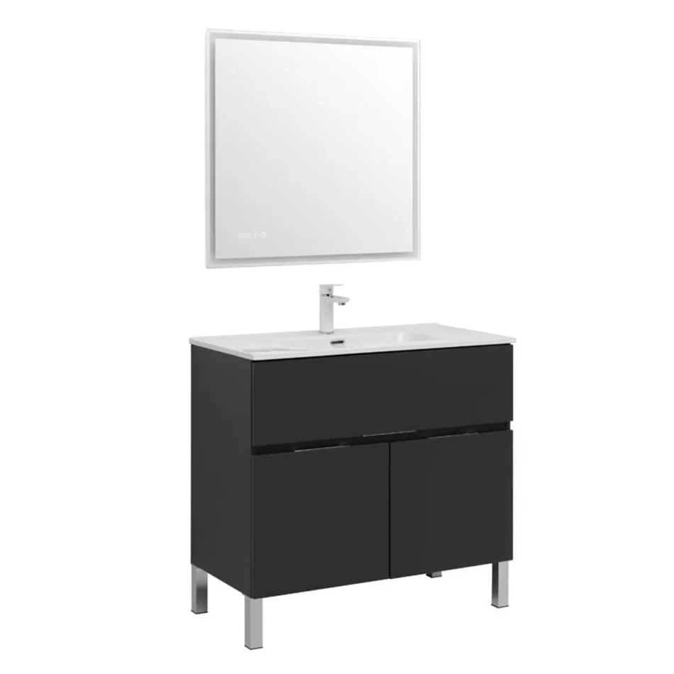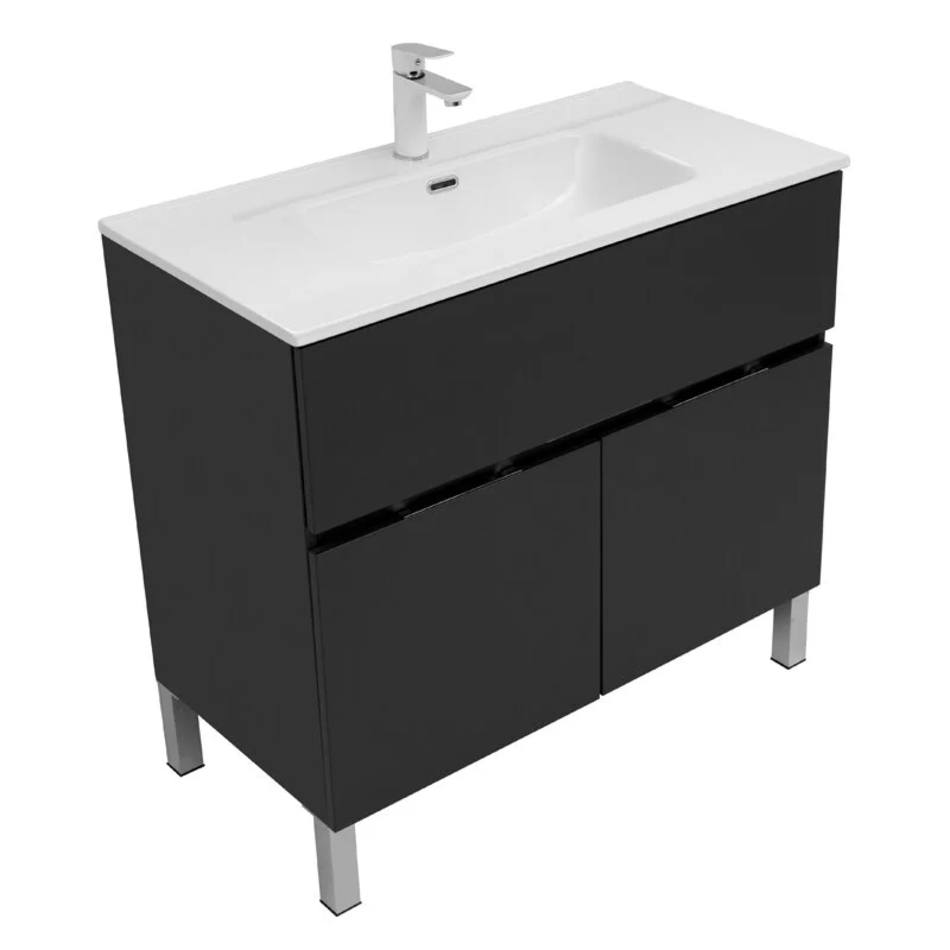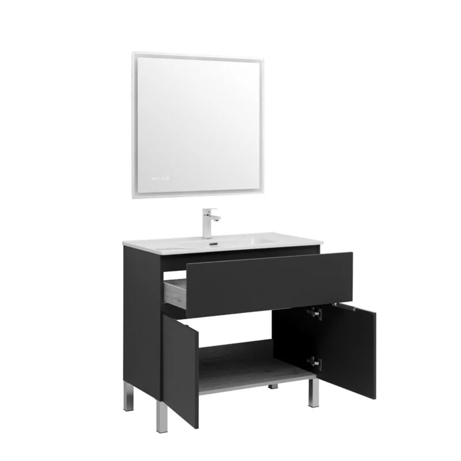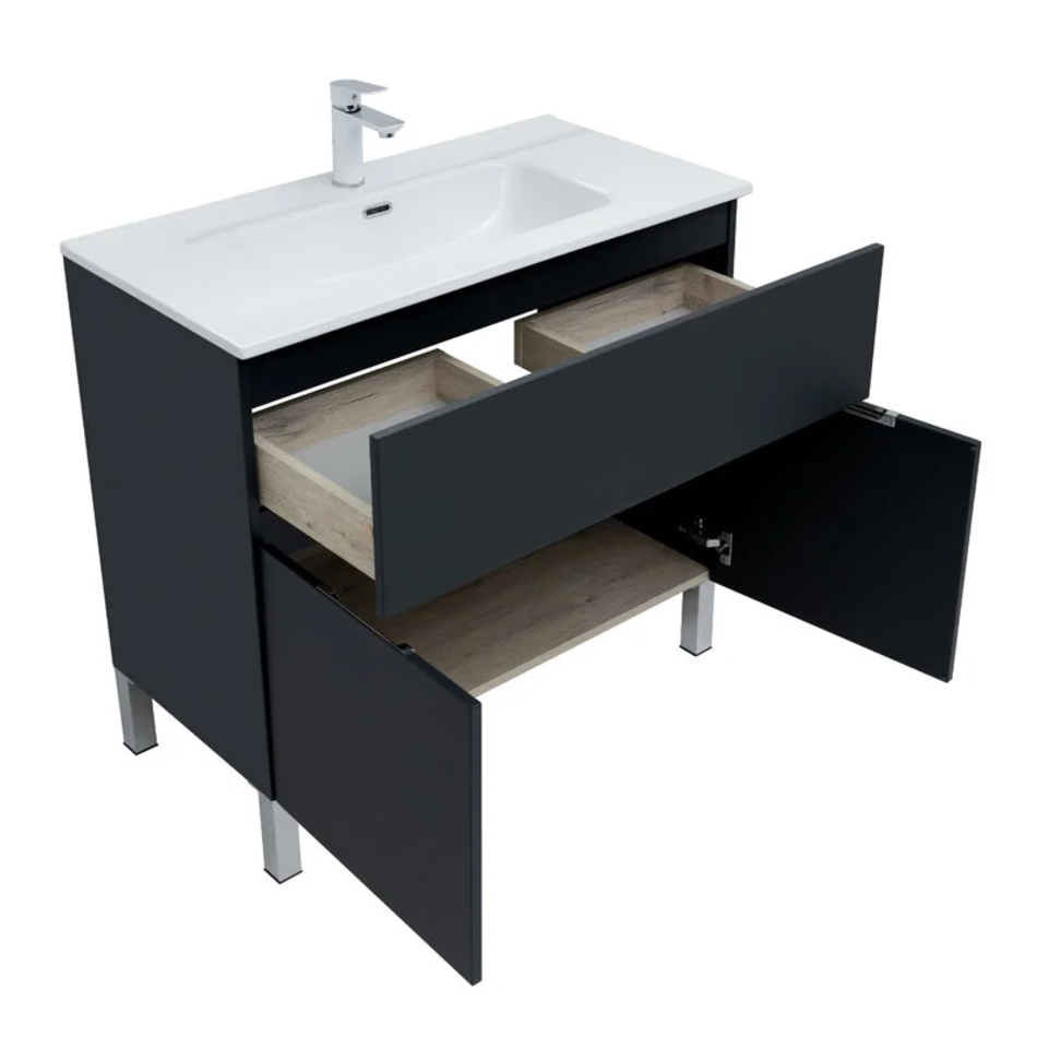 Тумба под раковину Aquanet Алвита new 90, напольная, 1 ящик, 2 дверцы, антрацит, 00303911