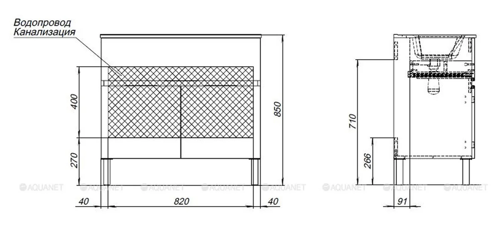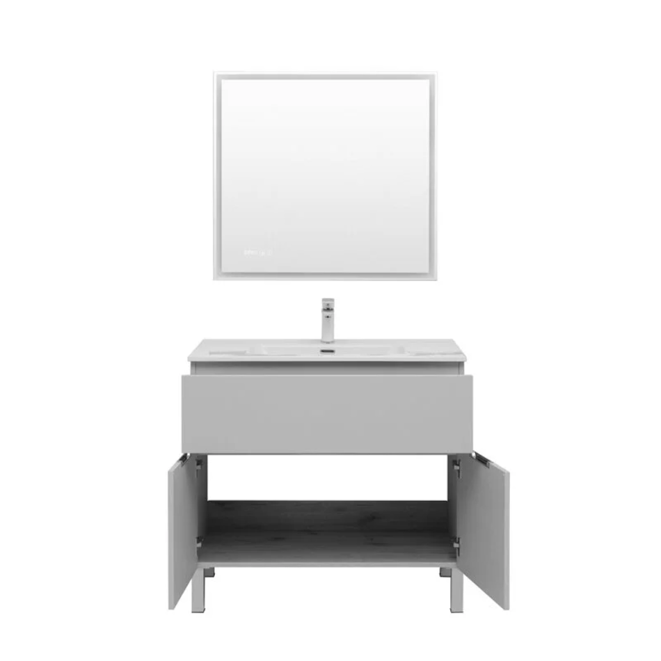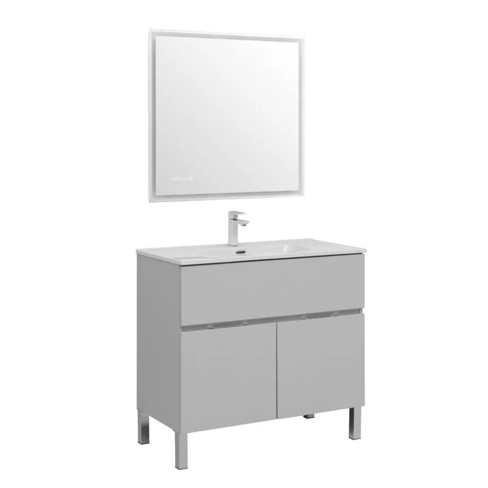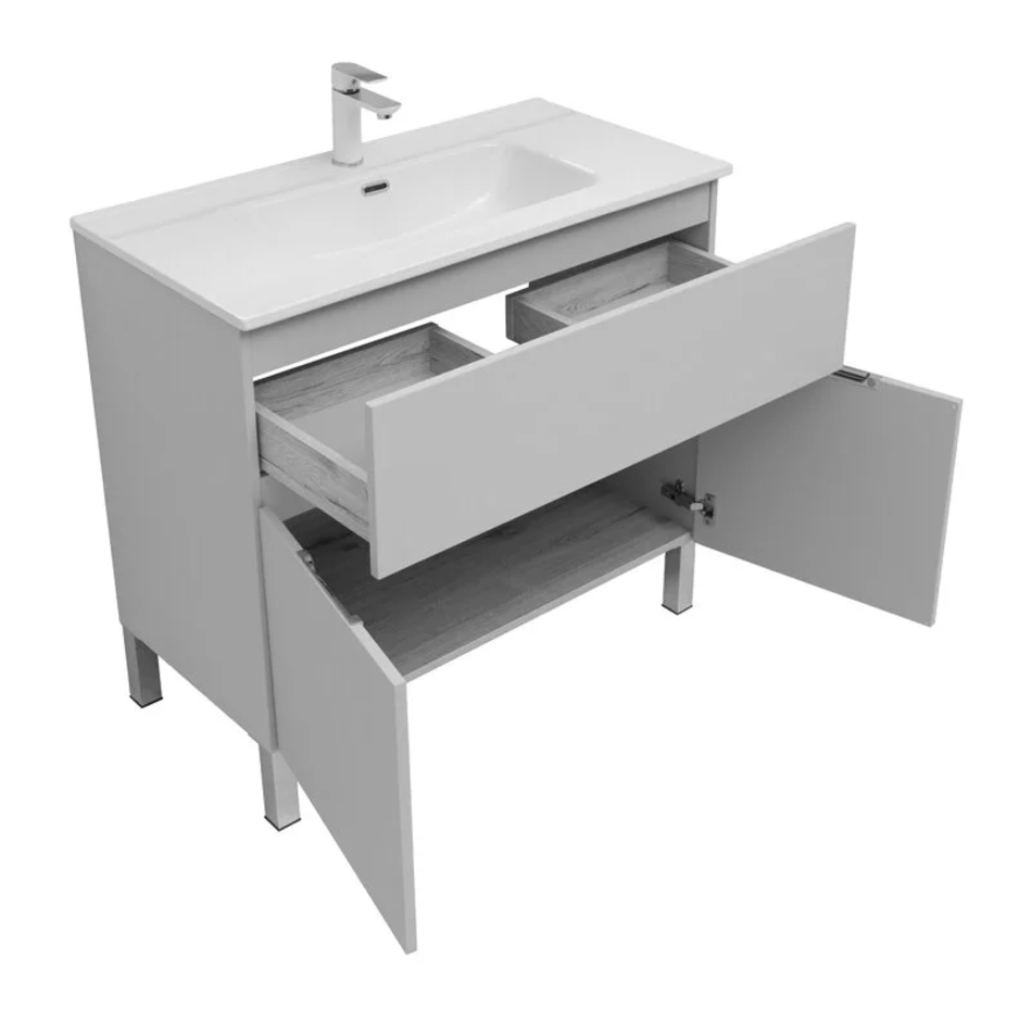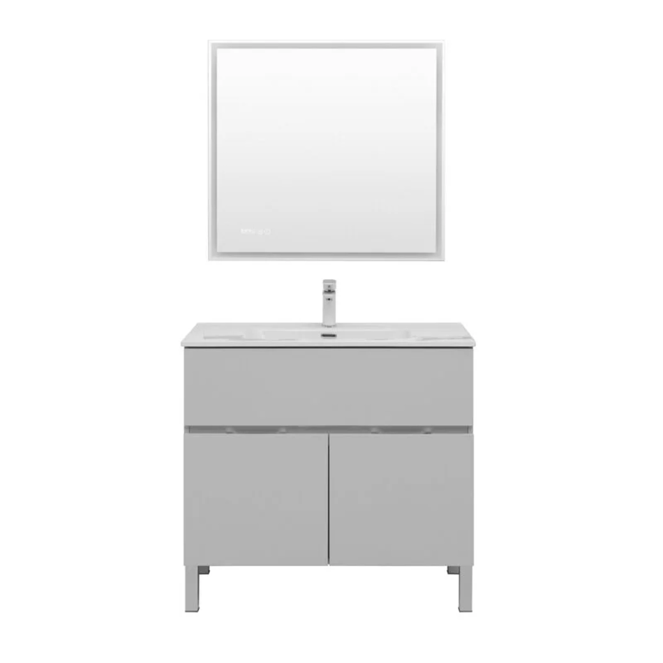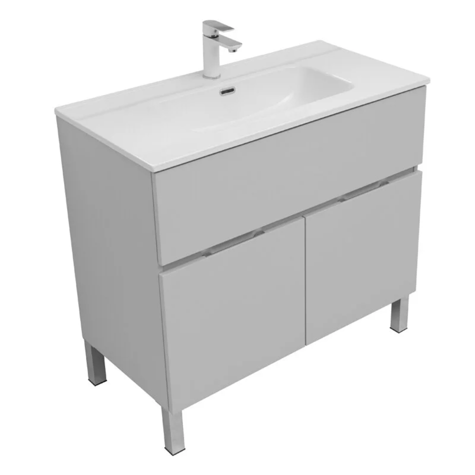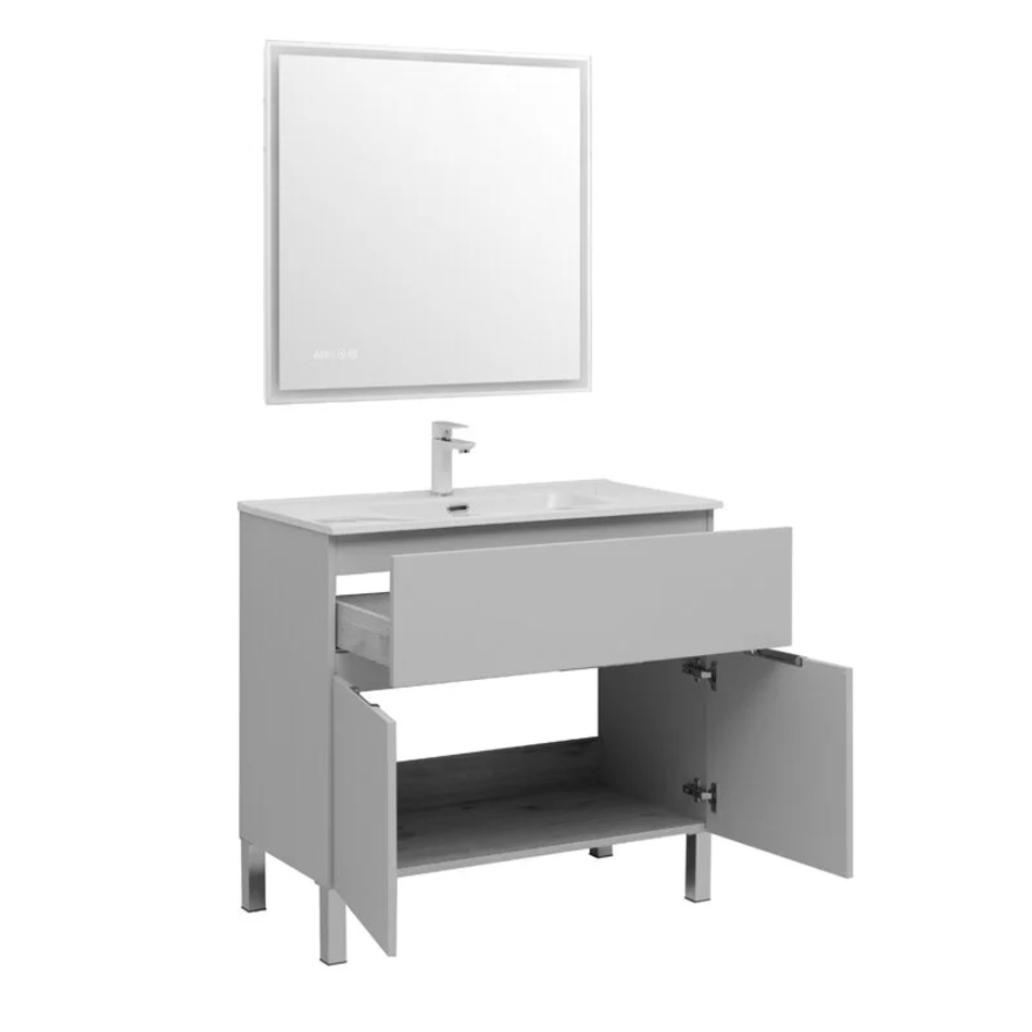 Тумба под раковину Aquanet Алвита new 90, напольная, 1 ящик, 2 дверцы, серый матовый, 00303913