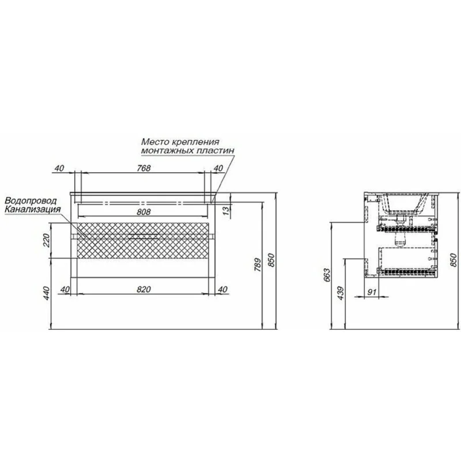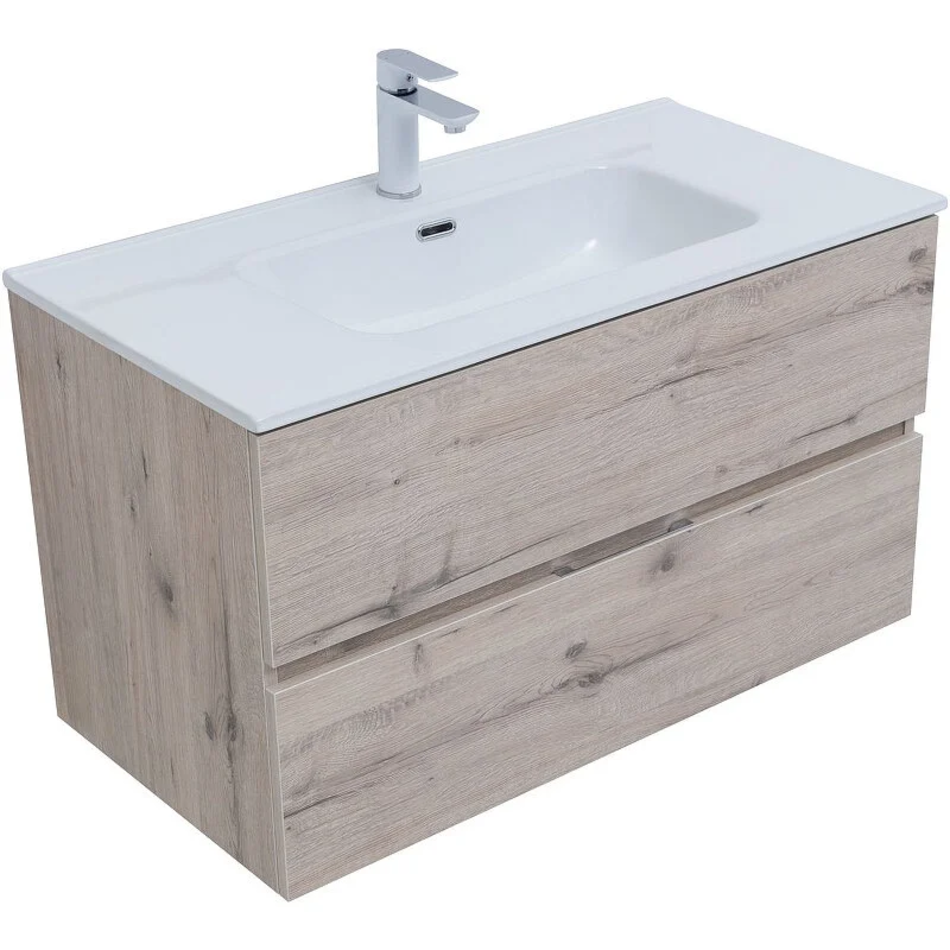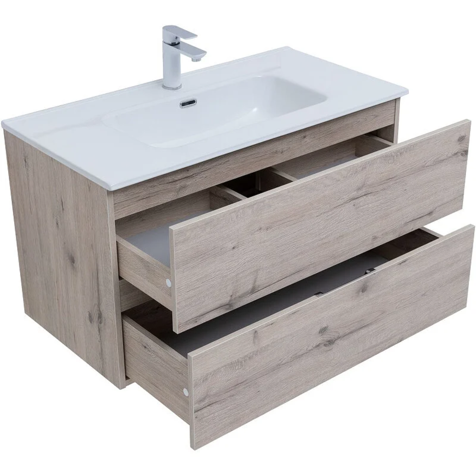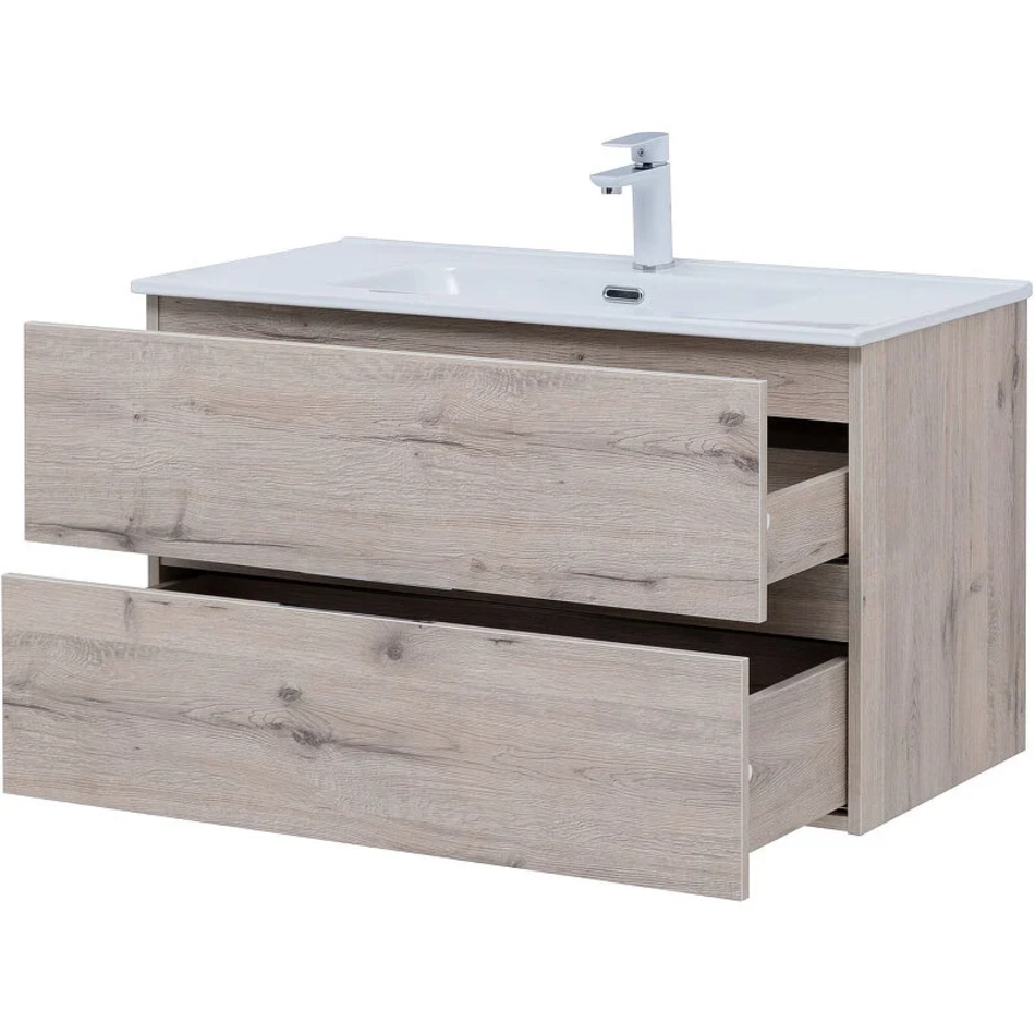 Тумба под раковину Aquanet Алвита New 90 см, подвесная, цвет дуб веллингтон белый, 303921