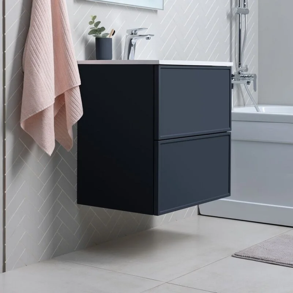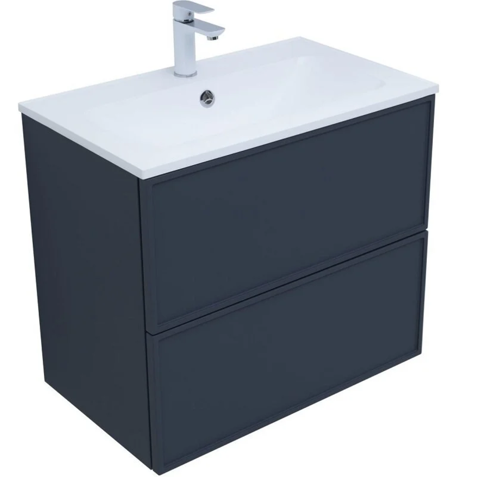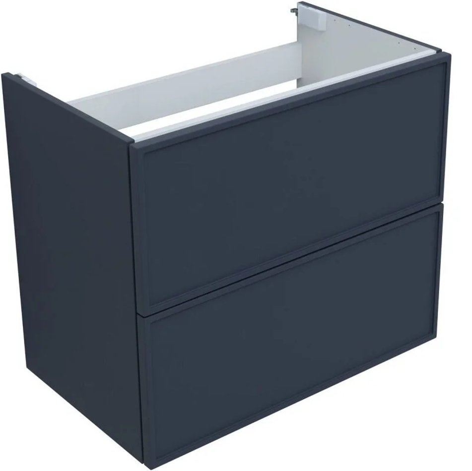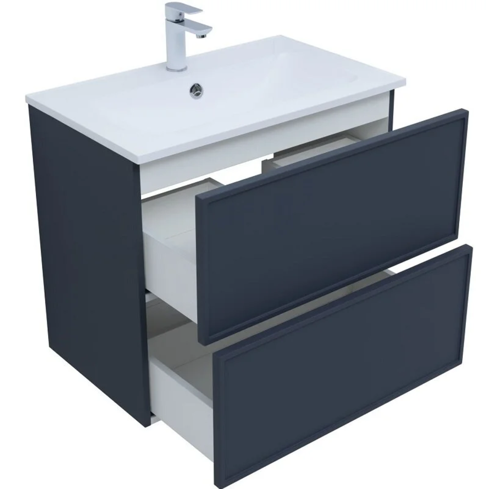 Для изготовления фасадов и корпусов используется суперматовая пленка ПВХ повышенной прочности с эффектом «Soft touch». Тумба имеет приятную, бархатистую на ощупь поверхность, устойчивую к царапинам и воздействию влаги. Выдвижные ящики открываются нажатием на фасад (направляющие с системой рush-to-open.