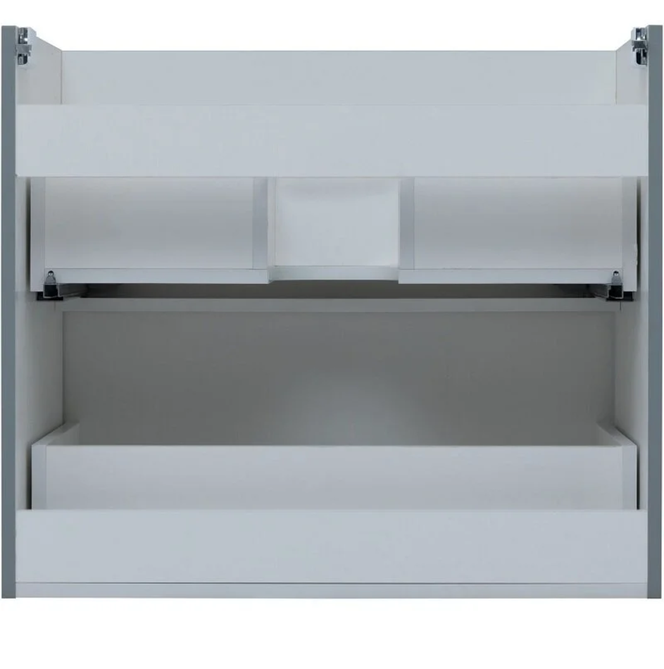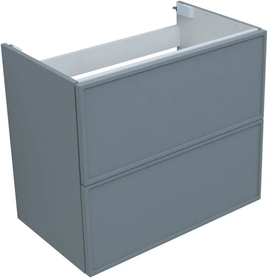 Для изготовления фасадов и корпусов используется суперматовая пленка ПВХ повышенной прочности с эффектом «Soft touch». Тумба имеет приятную, бархатистую на ощупь поверхность, устойчивую к царапинам и воздействию влаги. Выдвижные ящики открываются нажатием на фасад (направляющие с системой рush-to-open.