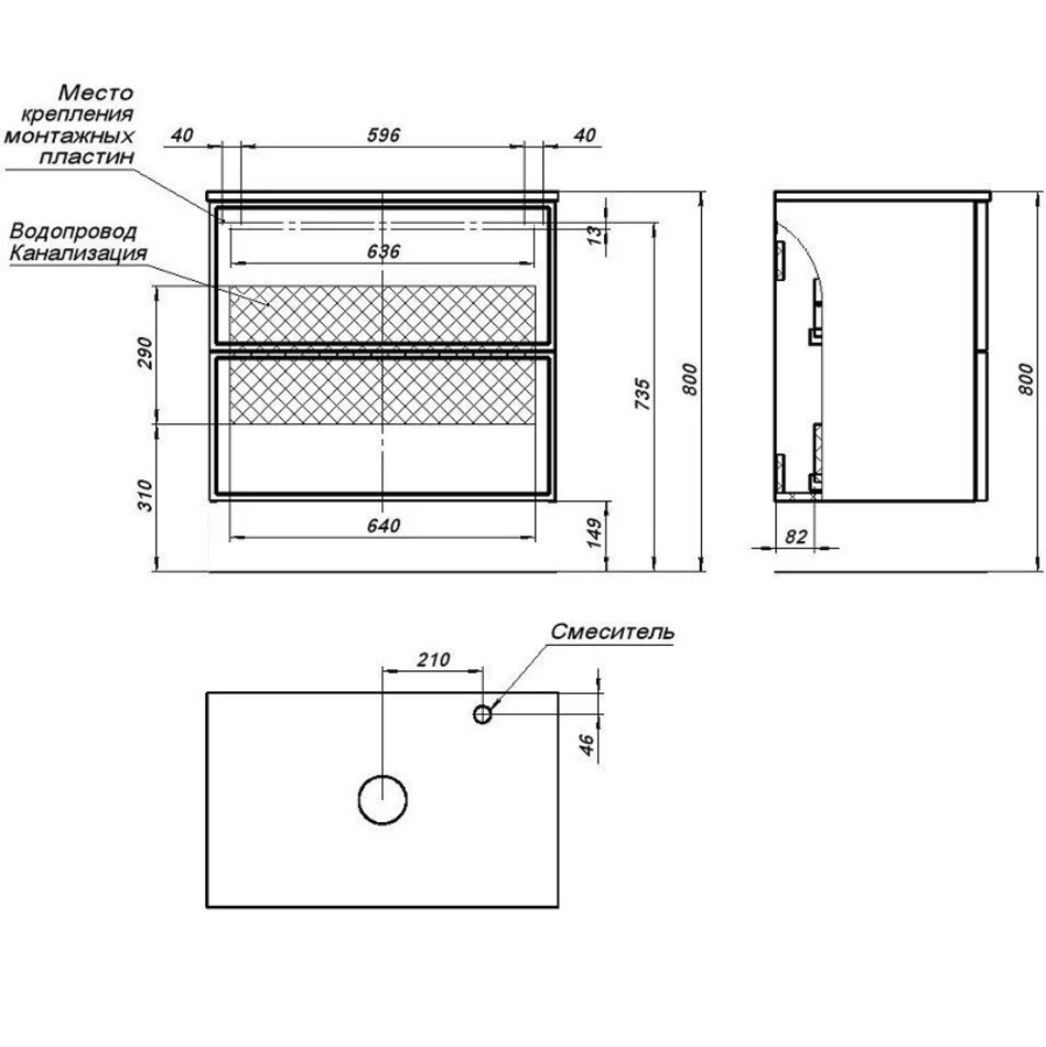 Тумба под раковину Aquanet Арт 75 см, 329064, цвет ясень графит