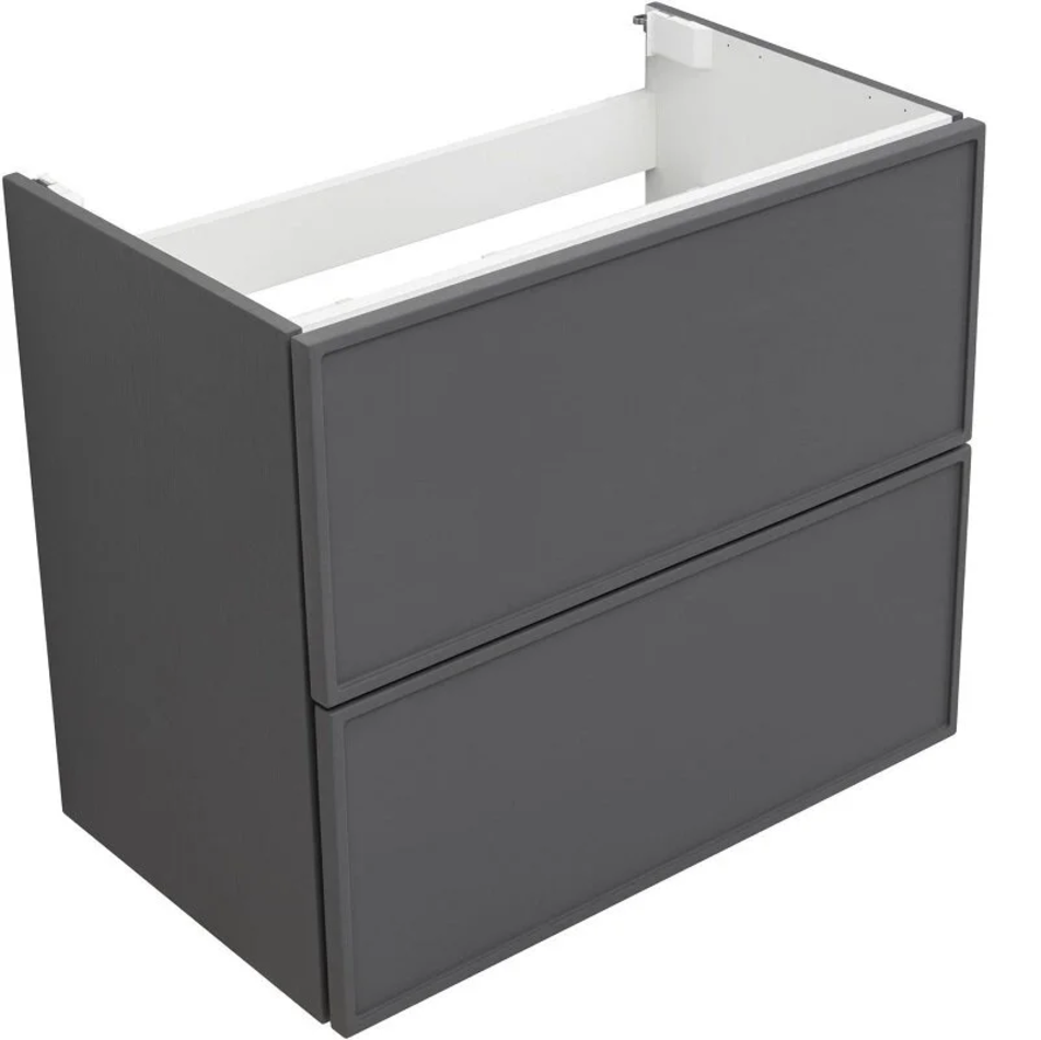 Для изготовления фасадов и корпусов используется пленка ПВХ со структурным тиснением в виде древесного рисунка. Тумба имеет приятную, бархатистую на ощупь поверхность, устойчивую к царапинам и воздействию влаги. Выдвижные ящики открываются нажатием на фасад (направляющие с системой рush-to-open.