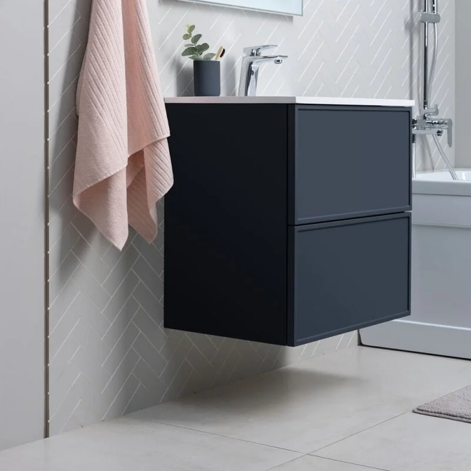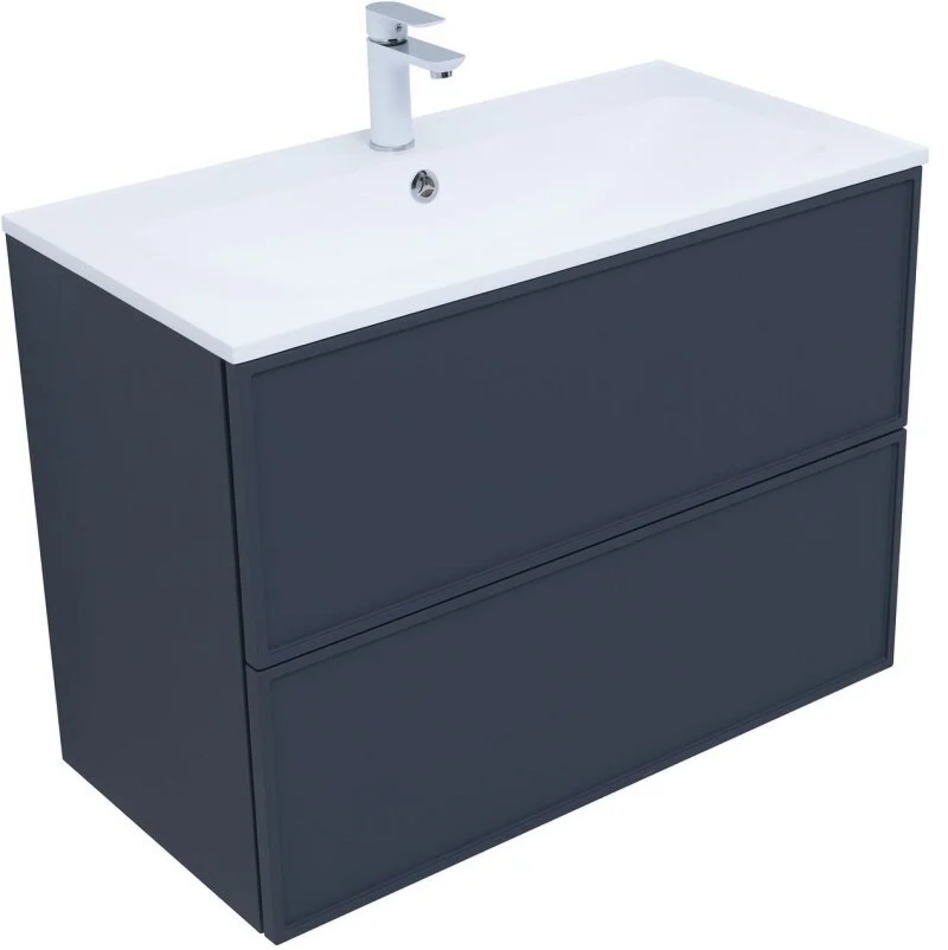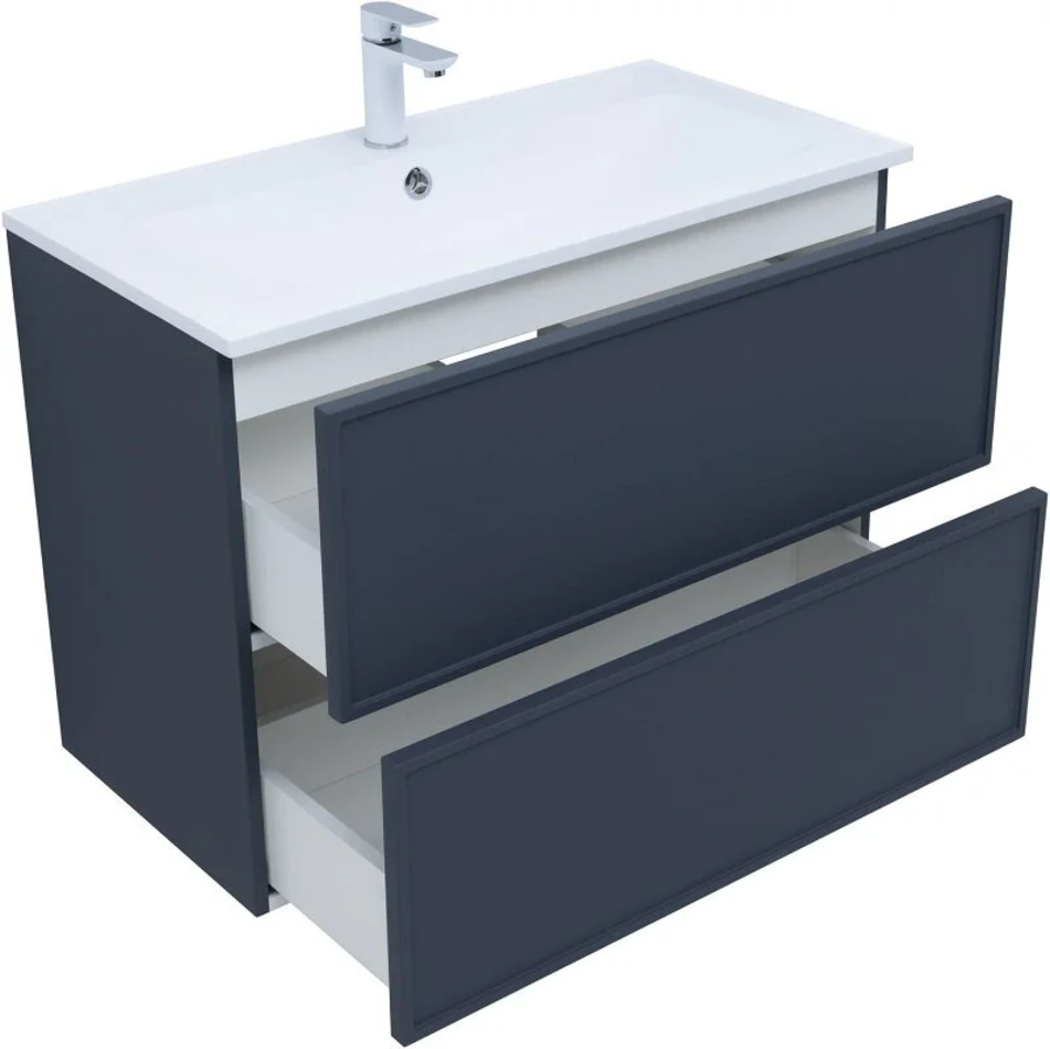 Для изготовления фасадов и корпусов используется суперматовая пленка ПВХ повышенной прочности с эффектом «Soft touch». Тумба имеет приятную, бархатистую на ощупь поверхность, устойчивую к царапинам и воздействию влаги. Выдвижные ящики открываются нажатием на фасад (направляющие с системой рush-to-open.