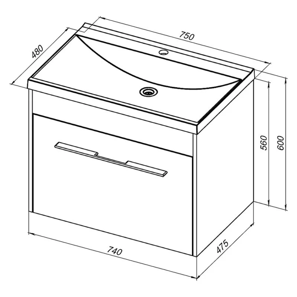 Тумба под раковину Aquanet Августа 75, подвесная, белый глянец, 00274144