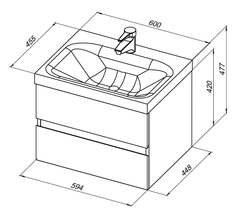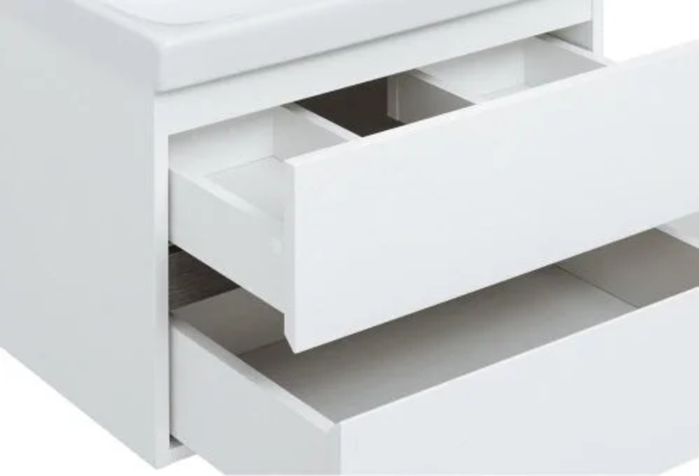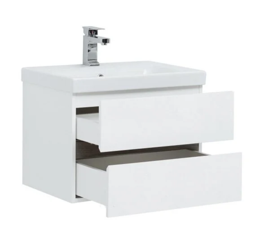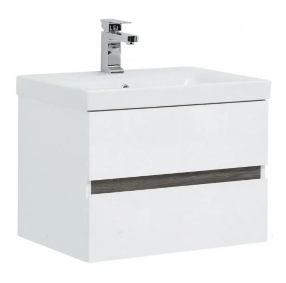 Тумба под раковину Aquanet Беркли 60 см подвесная, 2 ящика, белый глянцевый/дуб рошелье, 254289