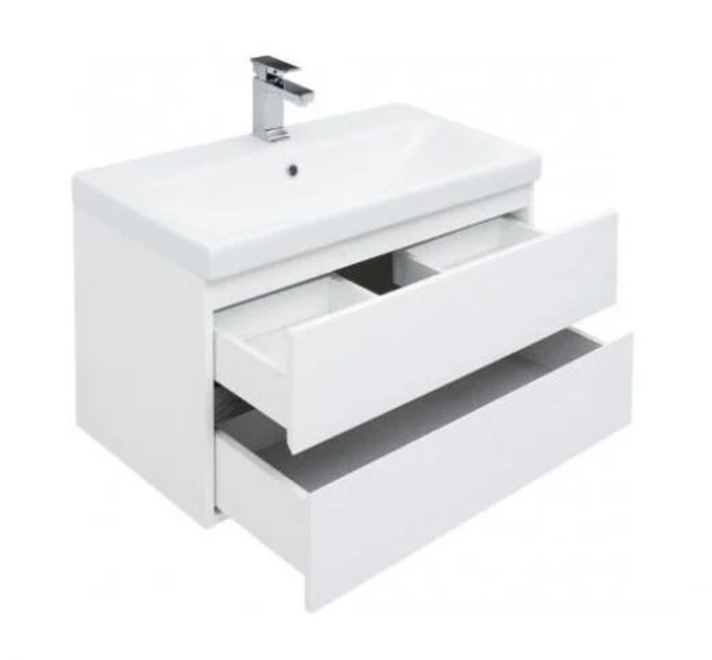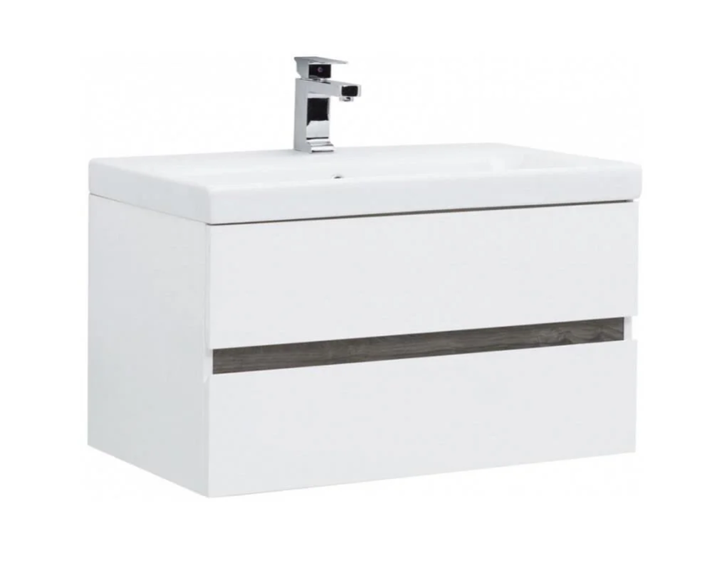 Тумба под раковину Aquanet Беркли 80 см подвесная, 2 ящика, белый глянцевый/дуб рошелье, 254290