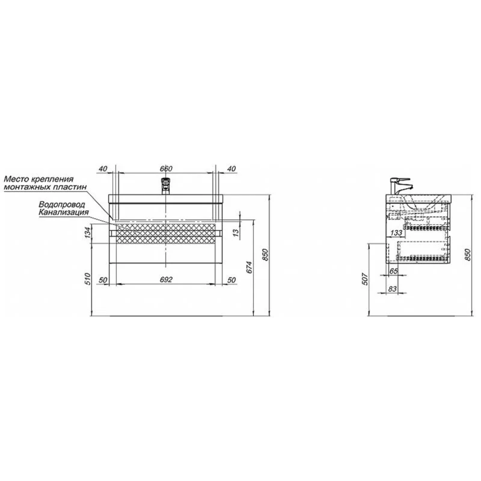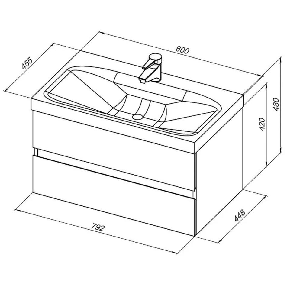 Тумба под раковину Размер: 80 x 45.5 x 42 см Монтаж: подвесной Ящики выдвижные: 2 Покрытие фасада: эмаль Материал: МДФ, ЛДСП Форма: прямоугольная Цвет: белый