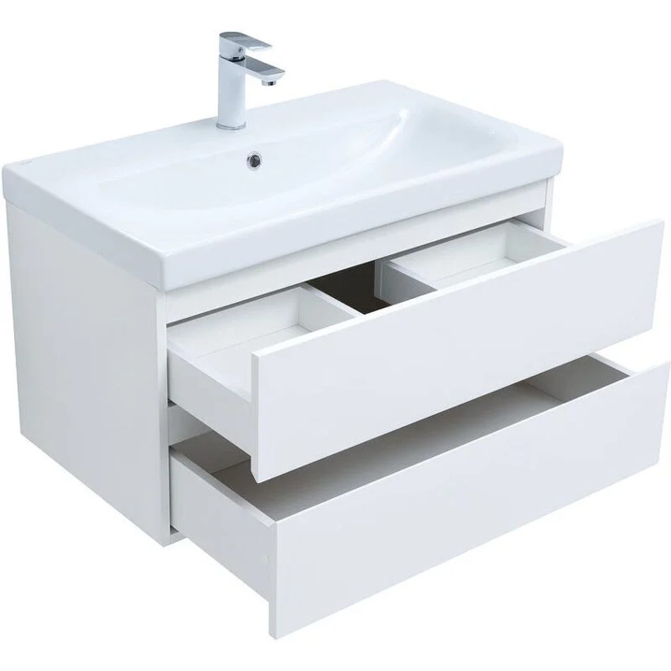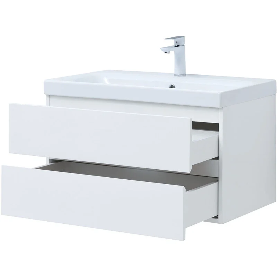 Тумба под раковину Aquanet Беркли 80 см подвесная, 2 ящика, цвет белый, 302351