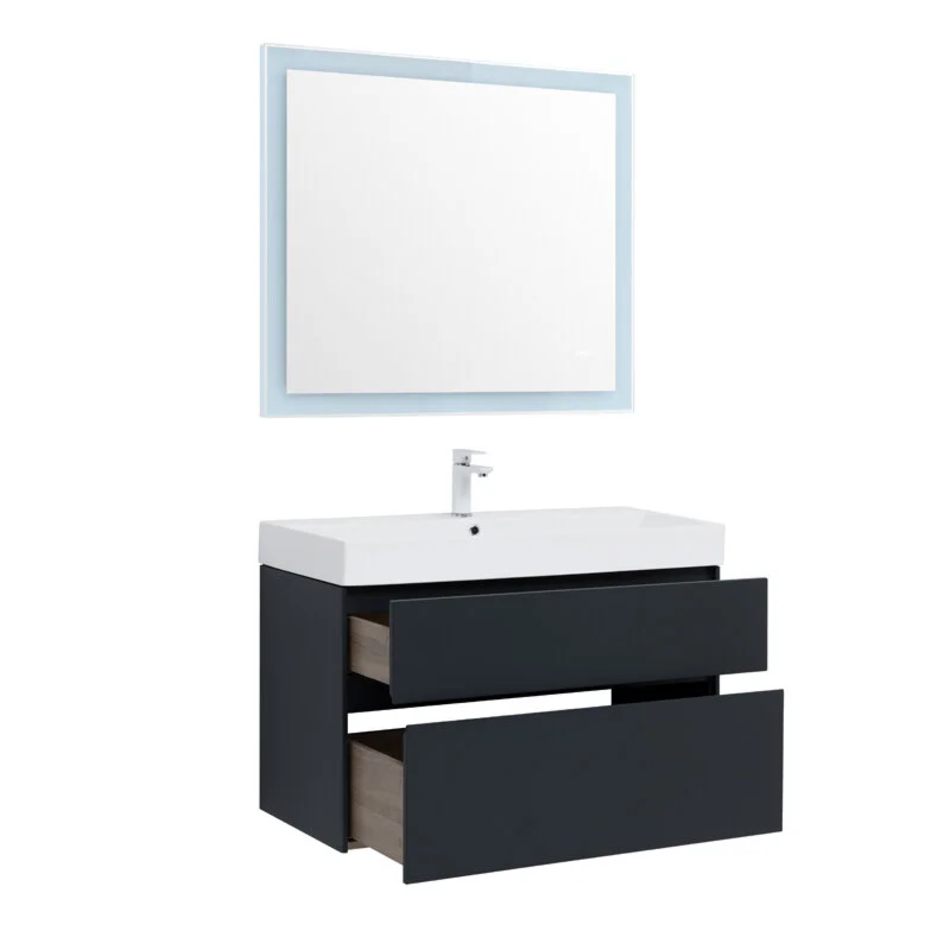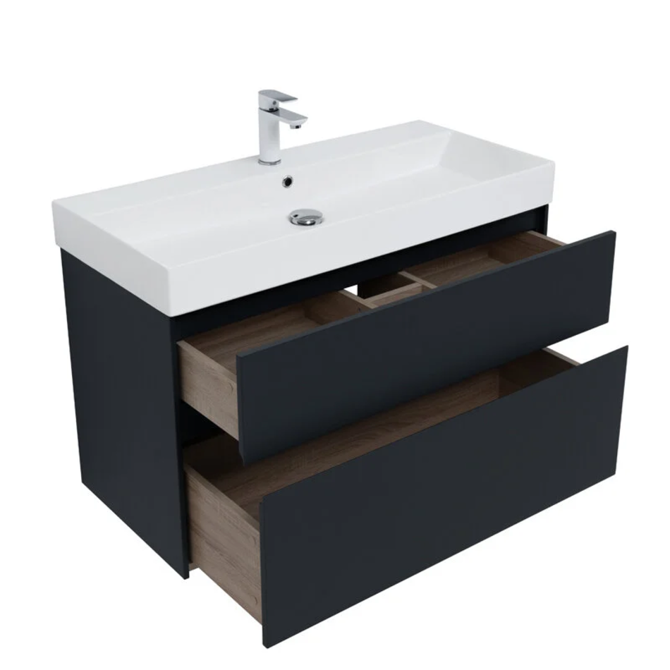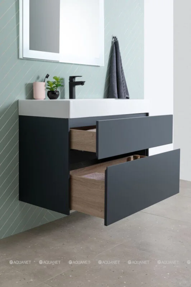 Тумба под раковину Aquanet Бруклин 100 см, подвесная, антрацит матовый, 00310139