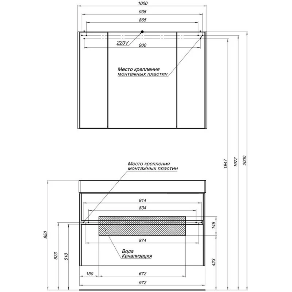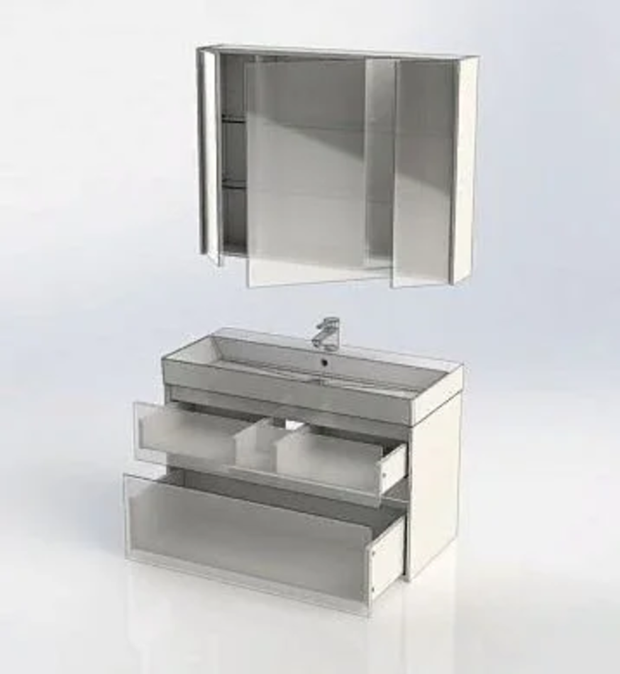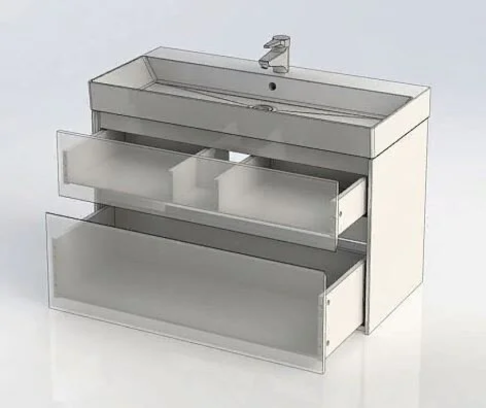 2 выдвижных ящика: нижний ящик тумбы имеет большую зону хранения, верхний разделен на несколько отделений для аксессуаров и ванных принадлежностей