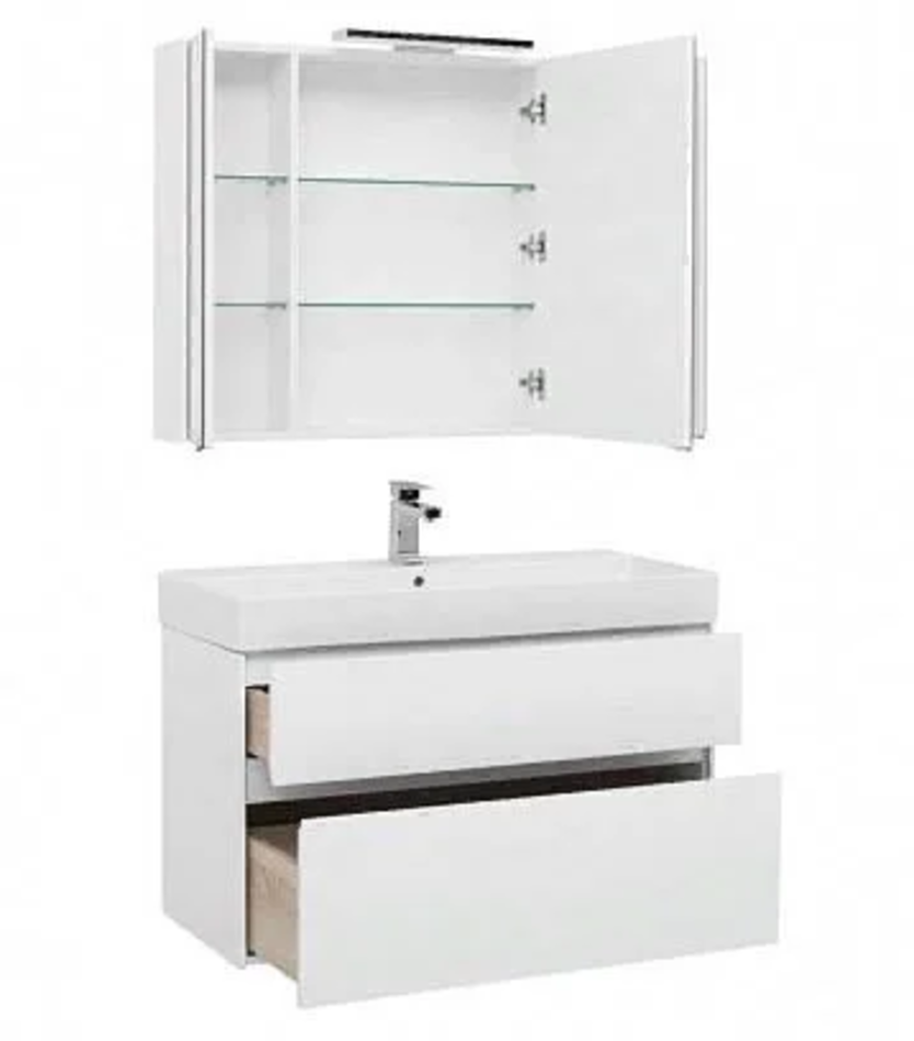 Тумба под раковину Aquanet Бруклин 100 см, подвесная, белая, 00203961