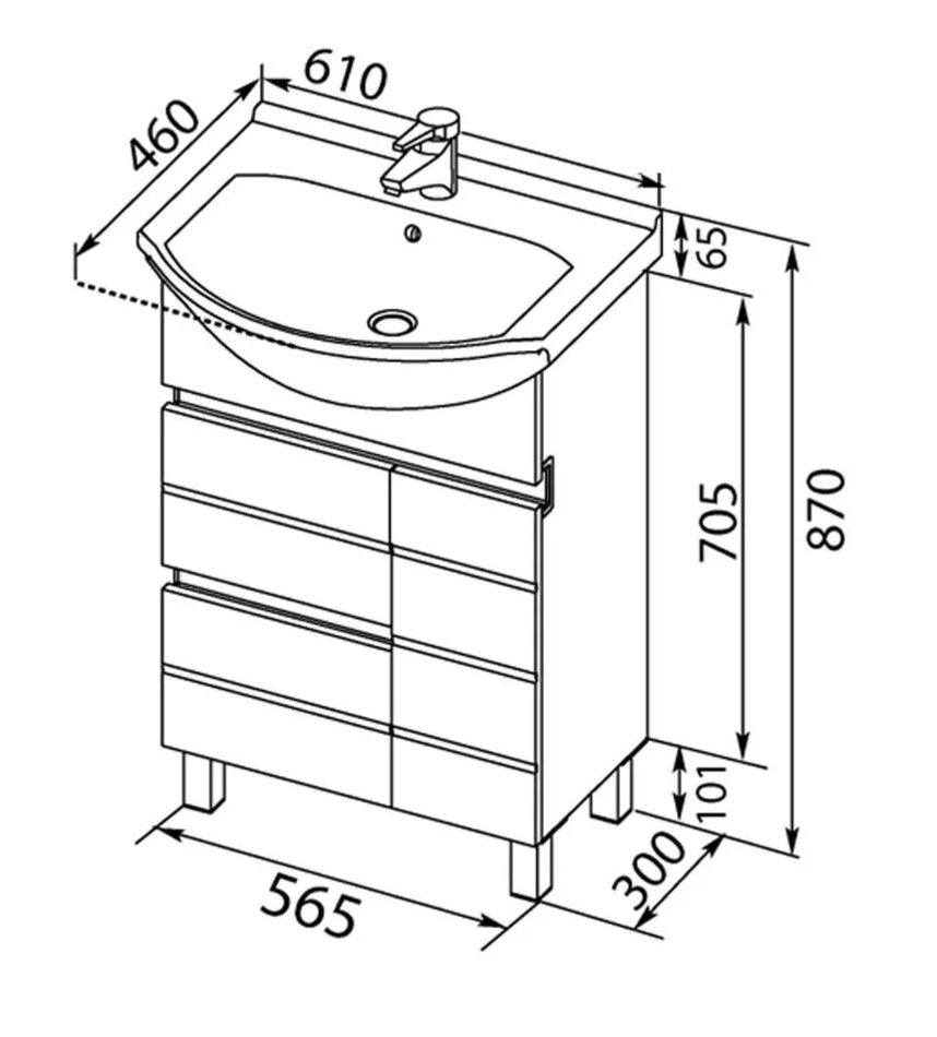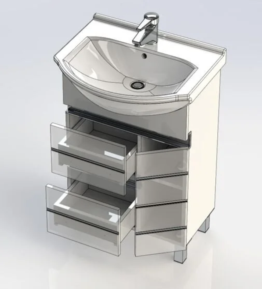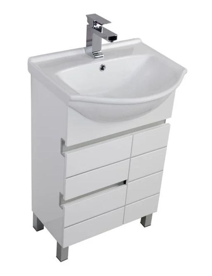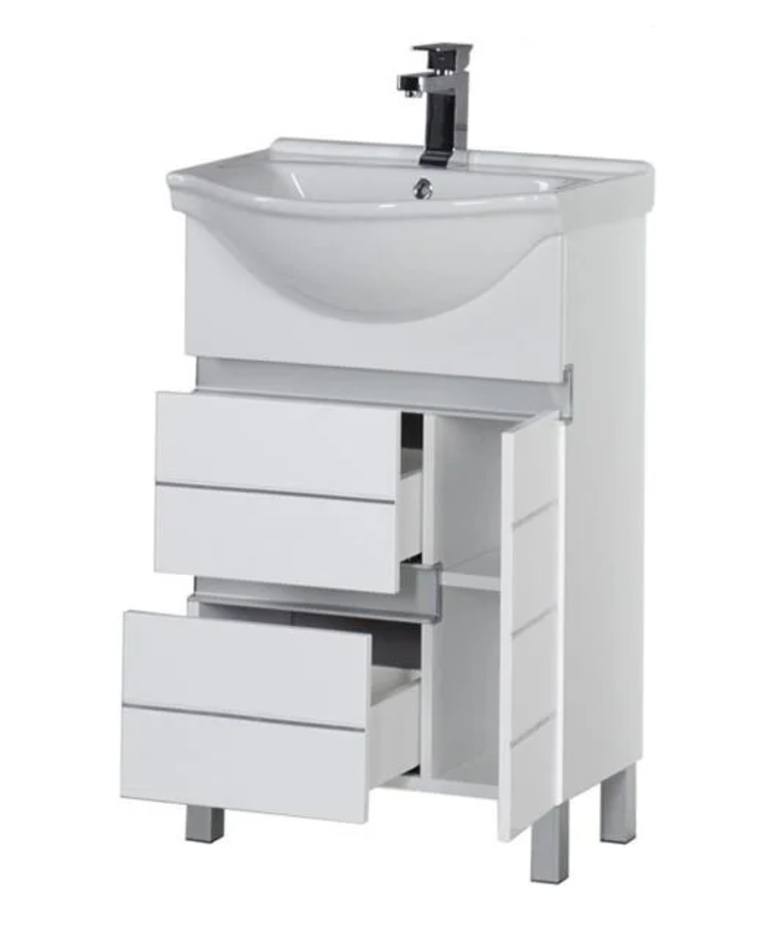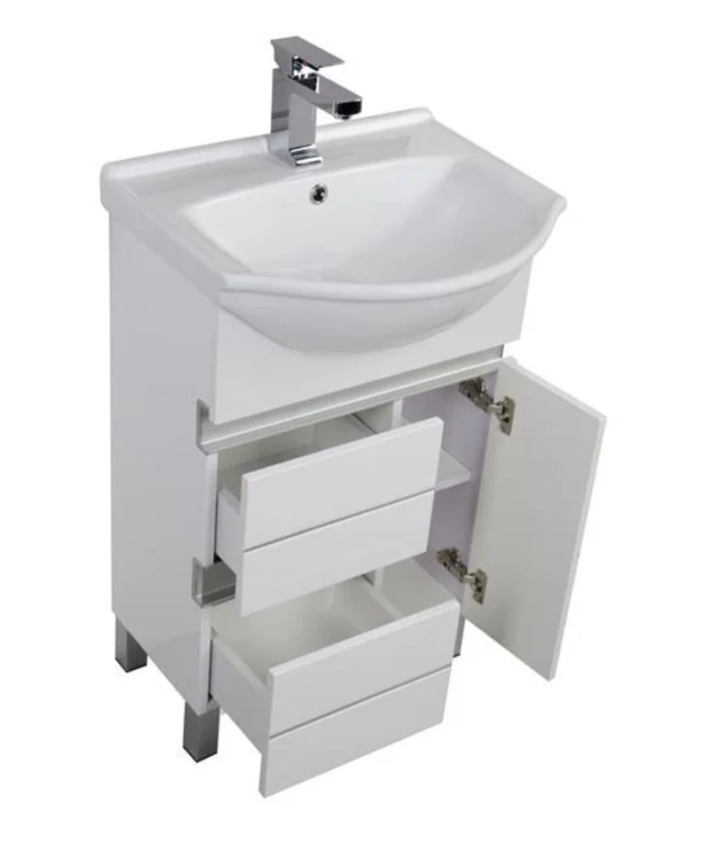 Тумба напольная Размер: 61*46*87 см Двери: 1 распашная Выдвижные ящики: 2 Материал: МДФ, ЛДСП Покрытие: краска/глянец Цвет: белый