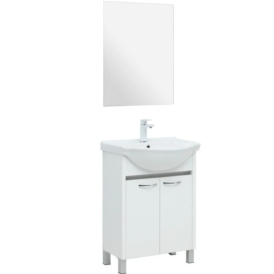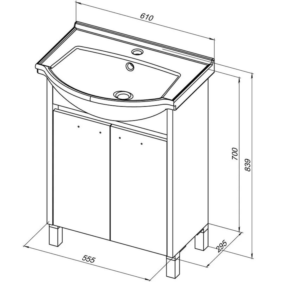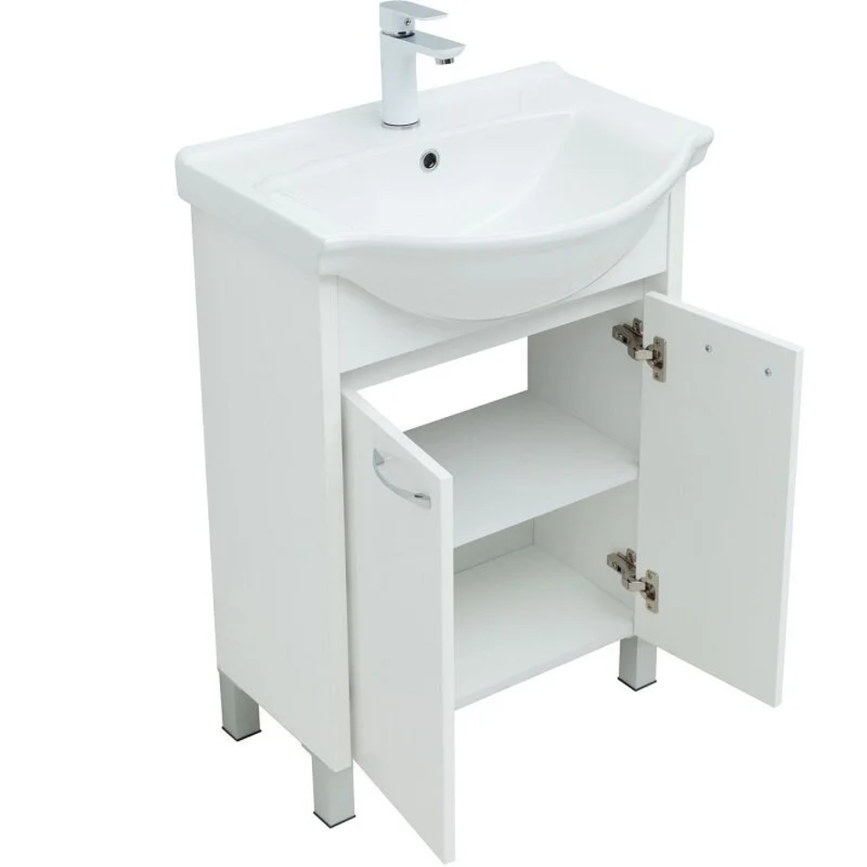 Тумба с раковиной Aquanet «Донна» 60 оснащена двумя белыми распашными дверцами, за которыми располагается один отсек с полкой. Удобство открывания обеспечивают хромированные ручки. Корпус сделан из ЛДСП. Модель устанавливают на четыре ножки.