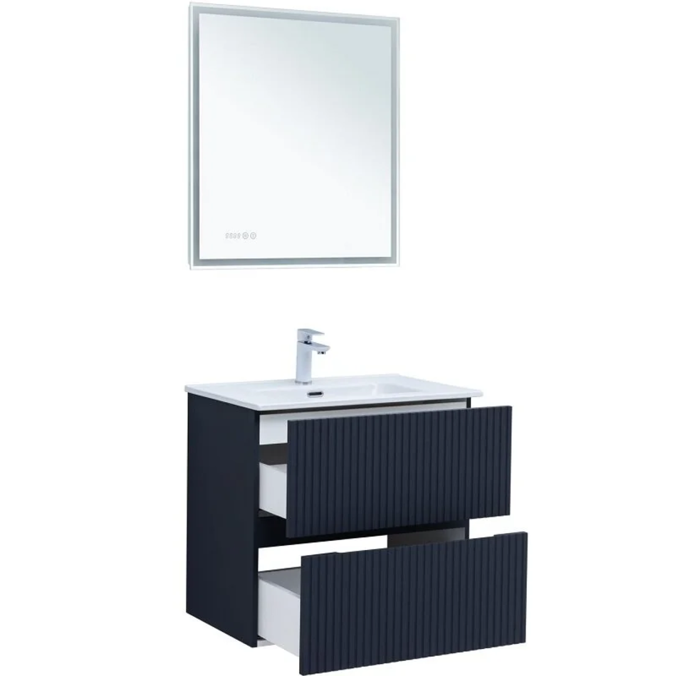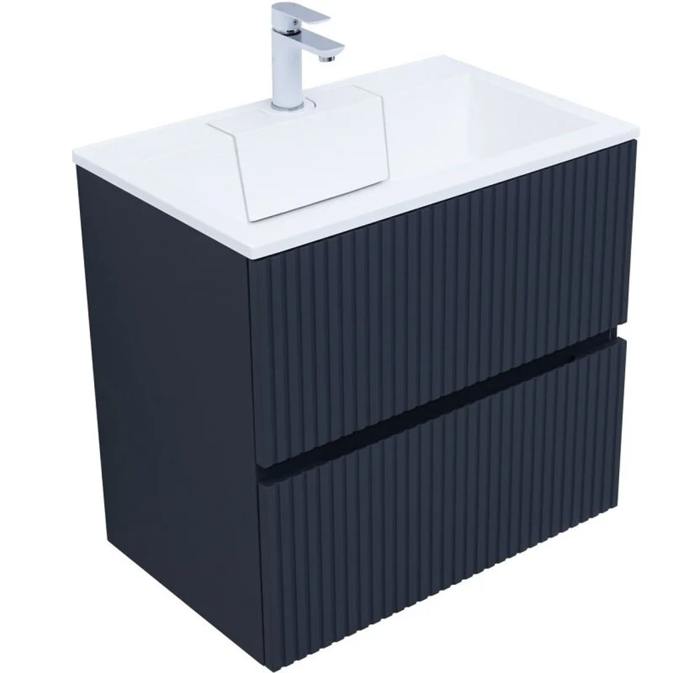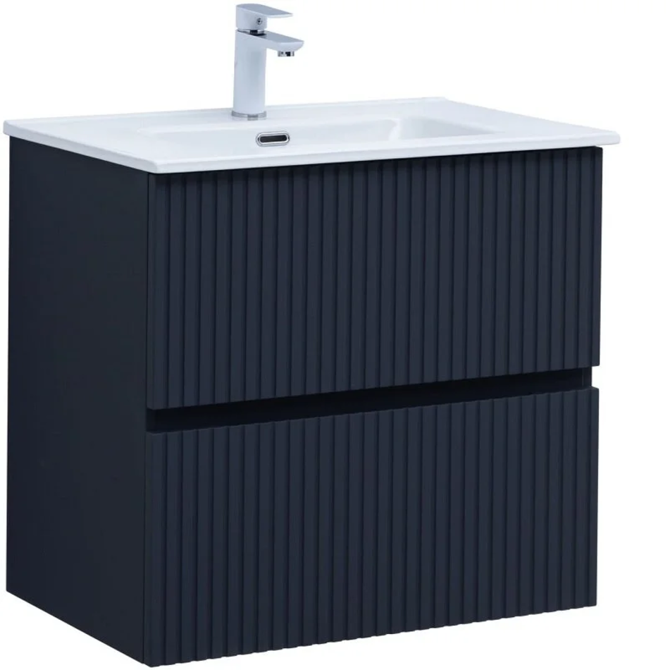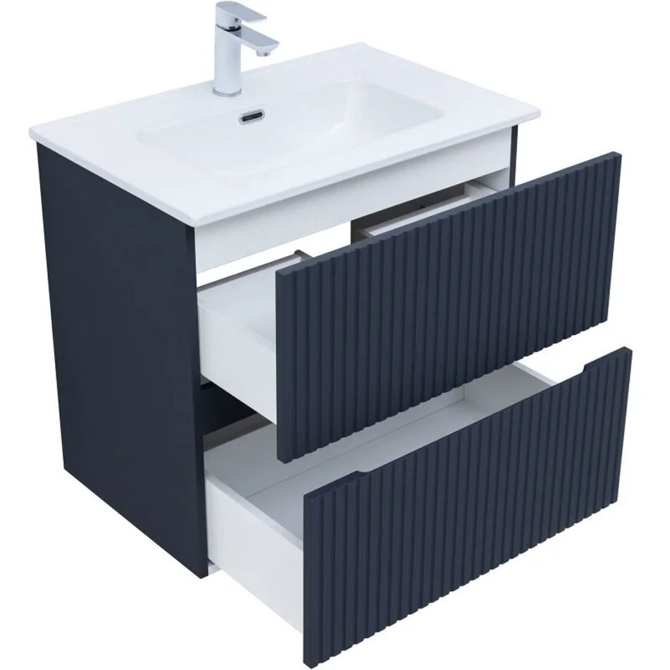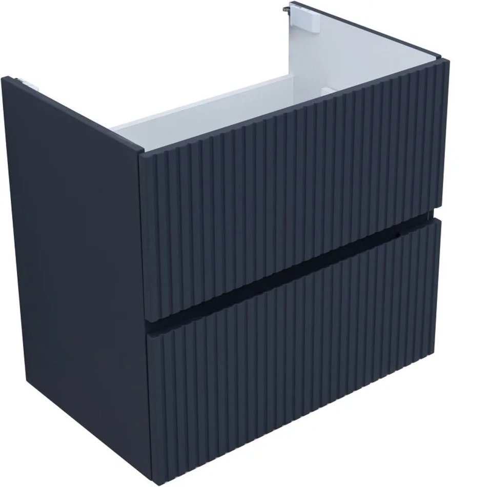 Для изготовления фасадов и корпусов используется суперматовая пленка ПВХ повышенной прочности с эффектом «Soft touch». Мебель имеет приятную, бархатистую на ощупь поверхность, устойчивую к царапинам и воздействию влаги. Удобная интегрированная ручка. Актуальная вертикальная фрезеровка фасадов. Внутренние детали - влагостойкая ЛДСП. Прочное дно ящиков, выполненное из влагостойкой ЛДСП.