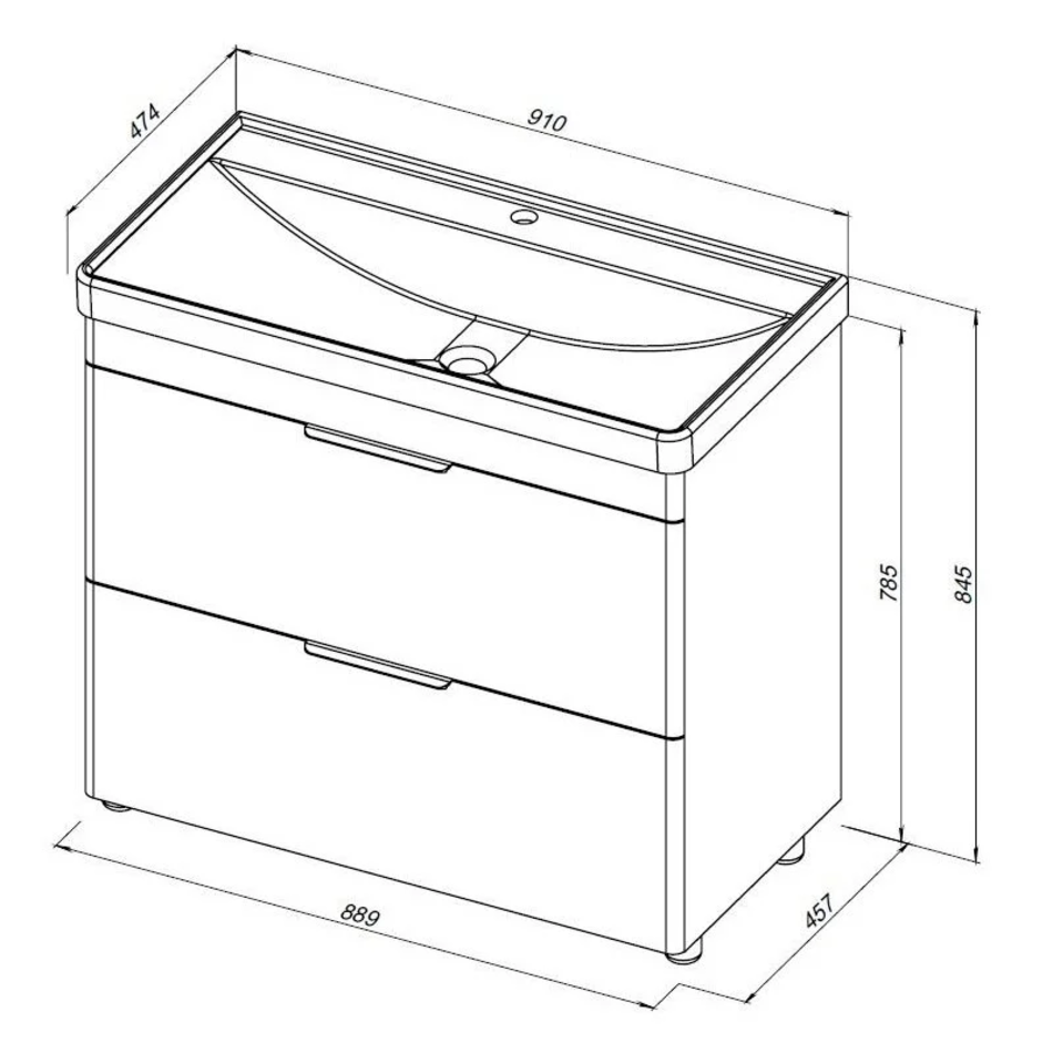 Тумба под раковину Aquanet Ирис New 336309, 90 см, напольная, цвет белый