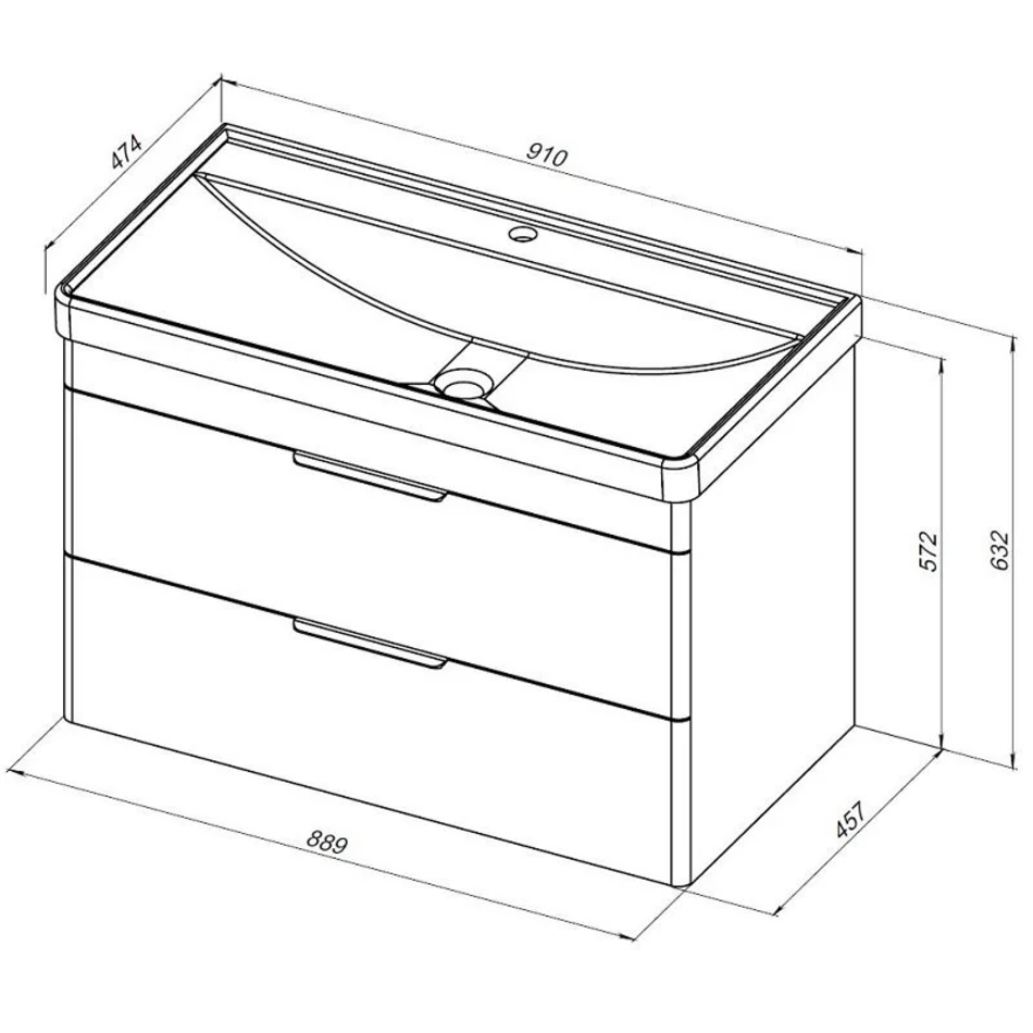 Тумба подвесная Размер: 88.9*45.7*57.2 см Выдвижные ящики: 2 Материал: МДФ, ЛДСП Покрытие: эмаль Цвет фурнитуры: хром Цвет: белый глянцевый