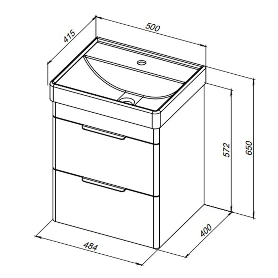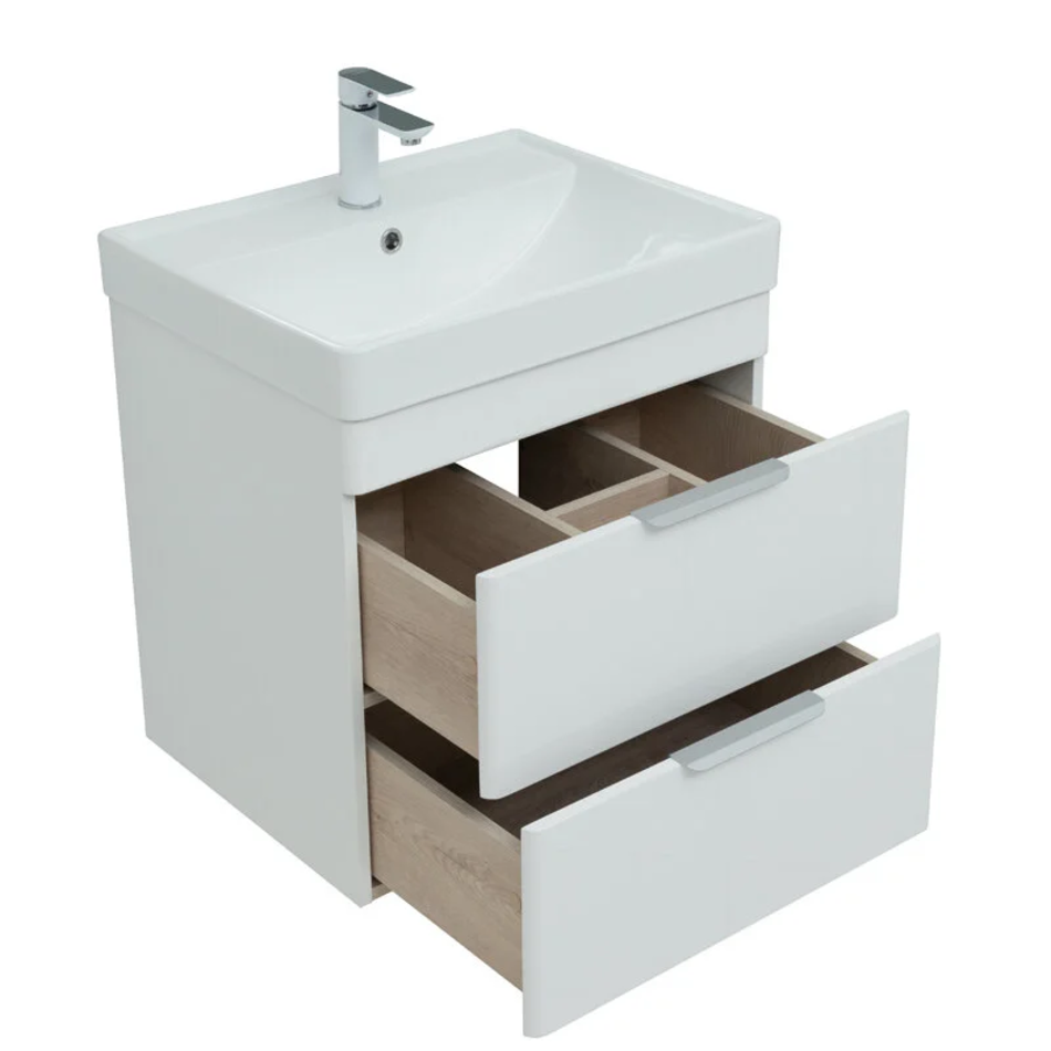 Тумба под раковину Aquanet Ирис new 50, подвесная, 2 ящика, белый глянец, 00310143