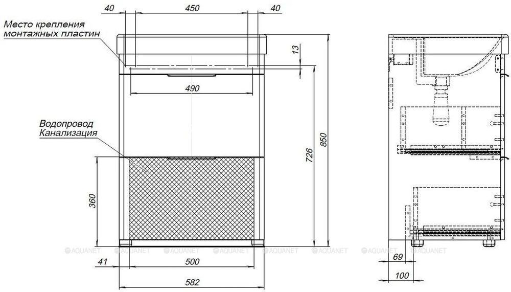Тумба под раковину Aquanet Ирис new 60, напольная, белый глянец, 00310152