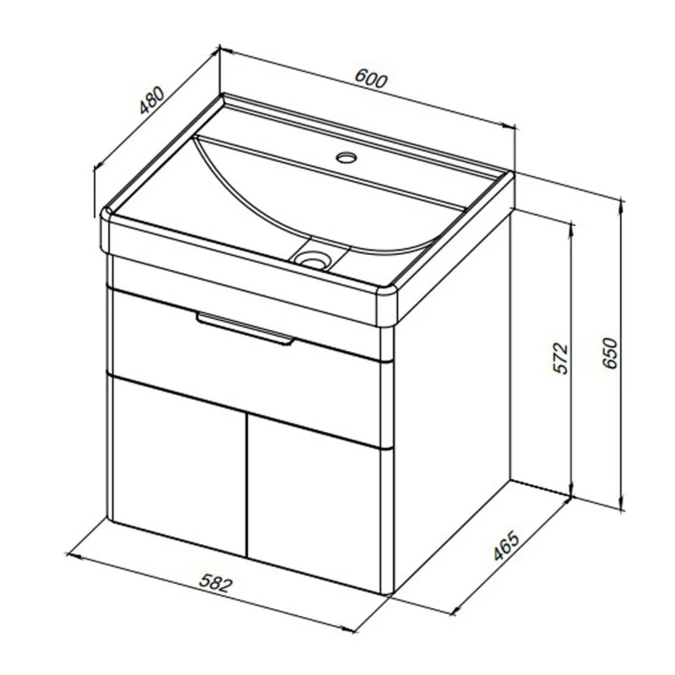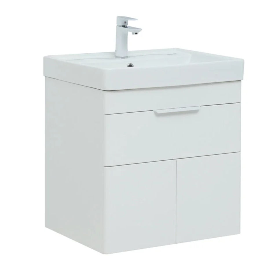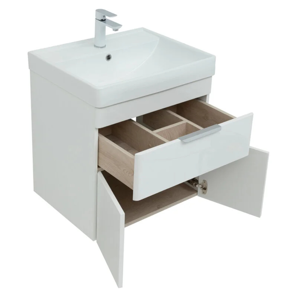 Тумба под раковину Aquanet Ирис new 60, подвесная, 1 ящик 2 фасада, белый глянец, 00310148