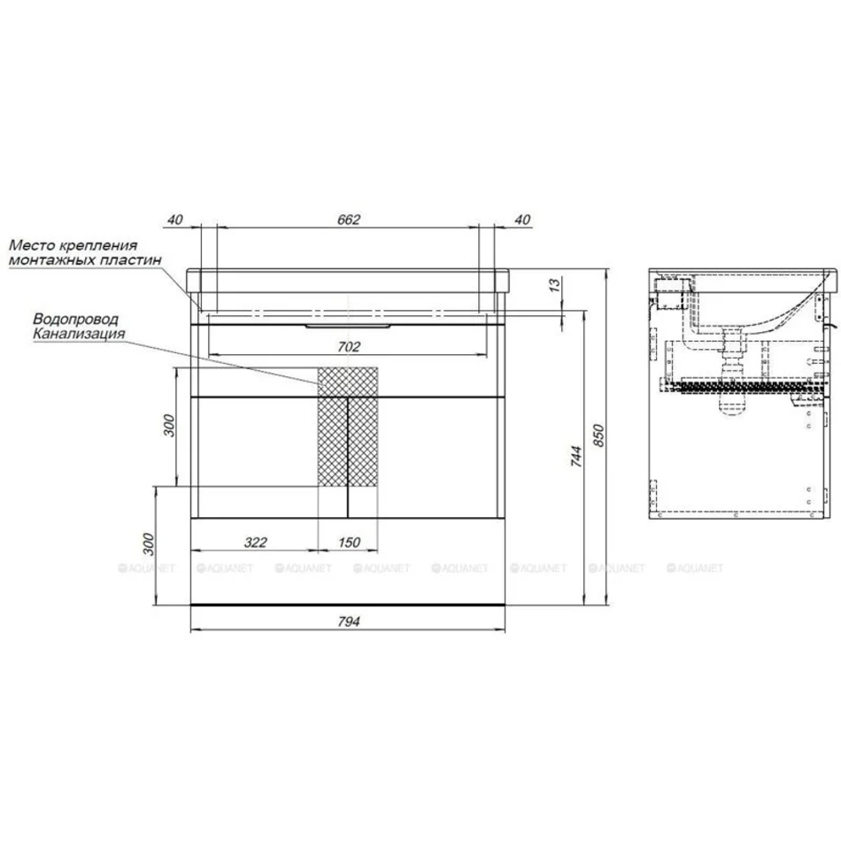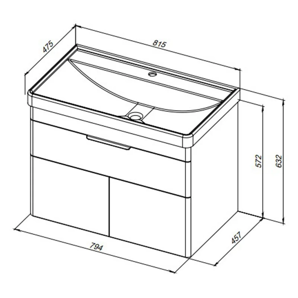 Тумба под раковину Aquanet Ирис new 80, подвесная, 1 ящик 2 фасада, белый глянец, 00310150